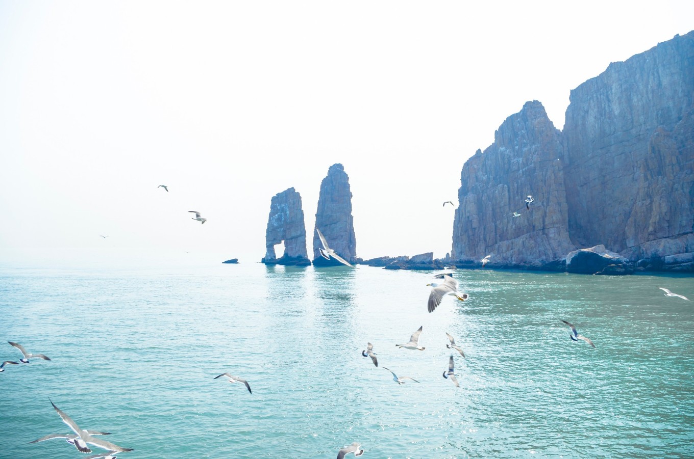 萬鳥島,其實若要放到我們廣闊的地圖上來說,它也只能算上是一顆微乎其微的沙子??删褪沁@么小的一個島,它孕育了無數(shù)的自然生靈。每年的四五月份,從西伯利亞或者東北的候鳥來此過冬,其中很大一部分是只黑尾鷗。而他們在此地安家落戶,培養(yǎng)下一代的幼鳥。等到五月份多時,幼鳥都出生后,真真是萬鳥千人的景象了。我們?nèi)サ臅r候是四月頭,這個時候的海鷗并不算多,但此番景象已使我們難忘。聽漁家大姐說以前是可以上島的,不過有些人上島掏海鷗蛋發(fā)生過旅游事故,所有的旅游公司就取消了上島的計劃。人與自然還是應好好相處的啊...