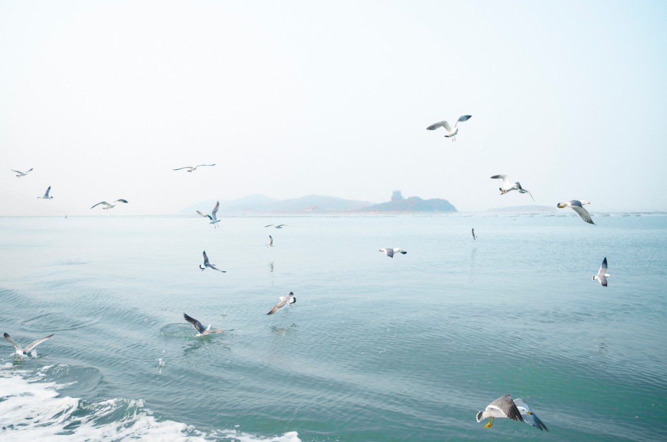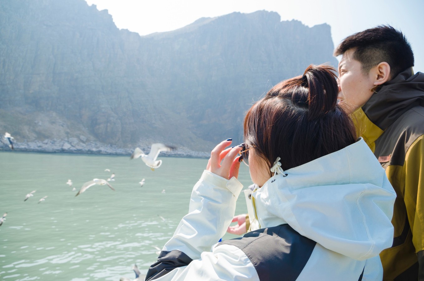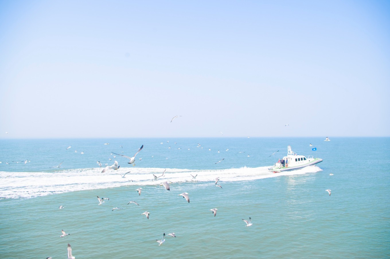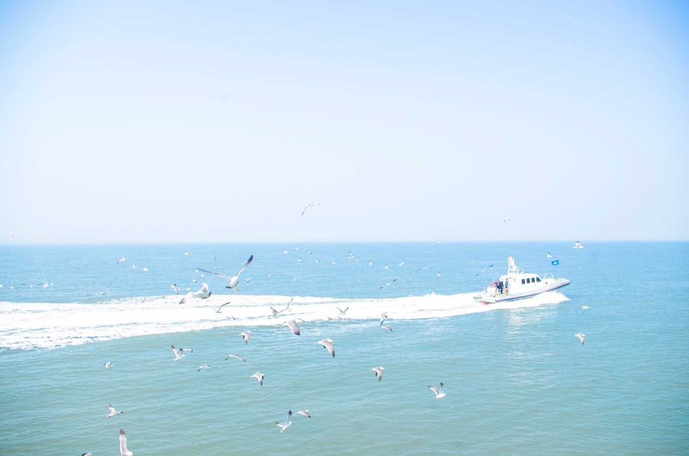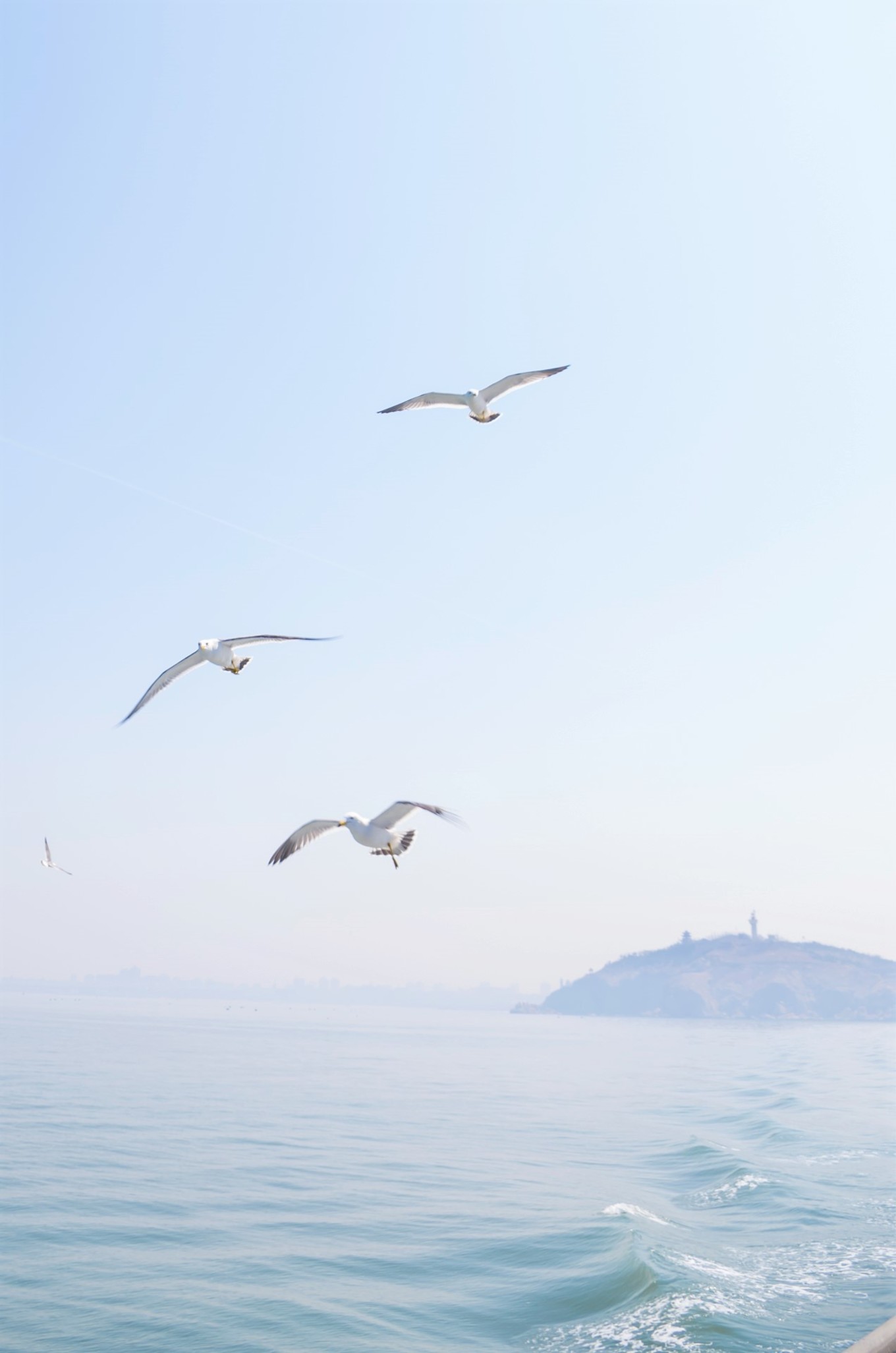 等我們離港口越來越遠的時候,海鷗愈來愈多,船上的旅客都被眼前的景象所吸引,有的游客拿了些面包來喂海鷗。海鷗在天空飛的樣子真的很不一樣,同行的伙伴一開始還以為是模型鳥,逗得我哭笑不得。