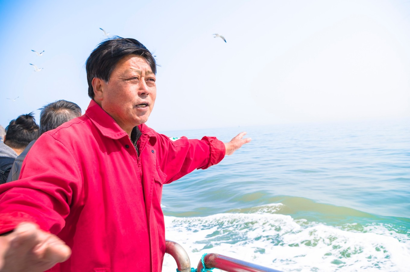 這是船上的一位水手。過了萬鳥島,很奇妙地我們便聊了起來,旁邊還有幾個游客在聽。我便喚他叔。叔的皮膚被曬被皸裂干燥,航行路上海風較大,叔沒說一會便流下幾滴眼淚,他說做這行做了三十多年了。傾其一生只做一件事,他有著對大海的無比深切的感情,有著對無償給予我們資源的大海的敬畏之心,讓我很是動容。一路上他給我講我們走的水路便是國際航道,那黃的是貨船,白的便是客船。海豹礁的那些每年早春洄游的海豹,還有他們釣魚的島。以前他在島上工作的時候,要穿好長好長到膝蓋的靴子,因為島上有“輻射”啊,我半響才回過神來,“蝮蛇”不由一笑。碰到叔說的比較讓人聽不懂的話,我便再說一遍。叔說我只會說土話,小陳給我翻譯頂好。哦,叔叫我小陳。等到了廟島的時候,叔和我說廟島以前是個監(jiān)獄,以前的漁民他們沒有指南針啊,那晚上找不到路回來了怎么辦,那他們看到了廟島上的燈光,可以到廟島等到白天在啟程回去。之后這里啊就建了媽祖廟,每年都會有“海神娘娘”廟會,漁民會去祈愿還愿,祈求海神的保佑,廟會可以說是長島最熱鬧的日子了。