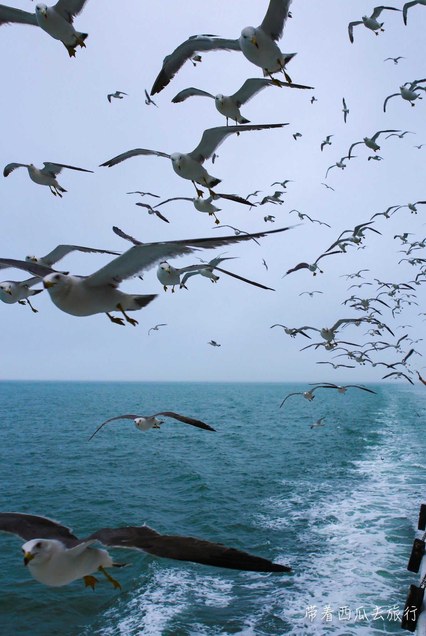 這里的海鷗會(huì)跟著客船飛,每天要從蓬萊碼頭至長島碼頭往返很多次,就是為了船上的游客手中一點(diǎn)小賄賂,據(jù)說他們只吃火腿腸,實(shí)際也的確看到很多海鷗在拿到面包一類的素食后,會(huì)吐掉。