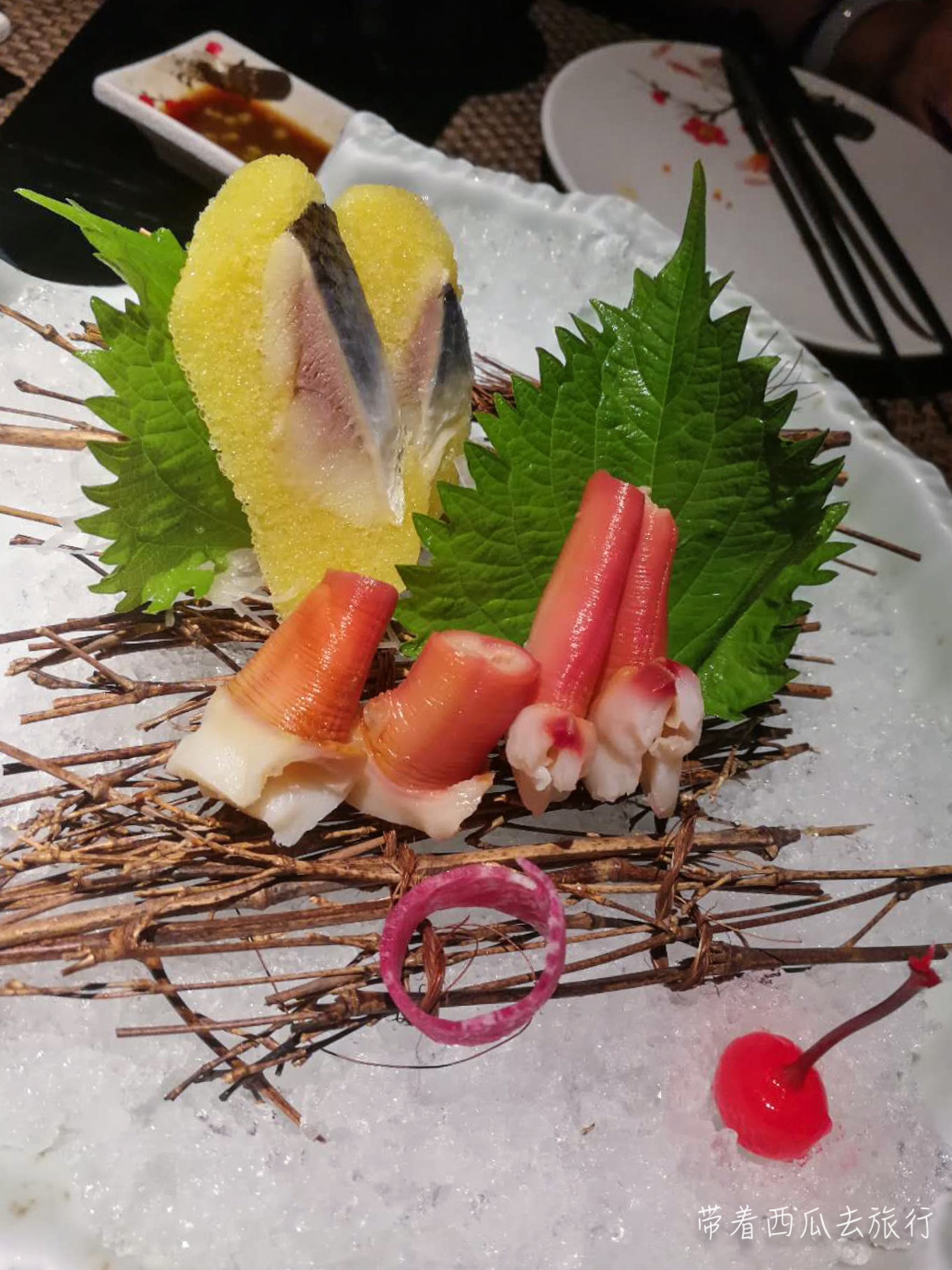 晚餐安排在酒店對(duì)面的一家日料店。這里是按人頭消費(fèi),最低消費(fèi)198元/人,不限量的哦。食材的確很棒?。。?