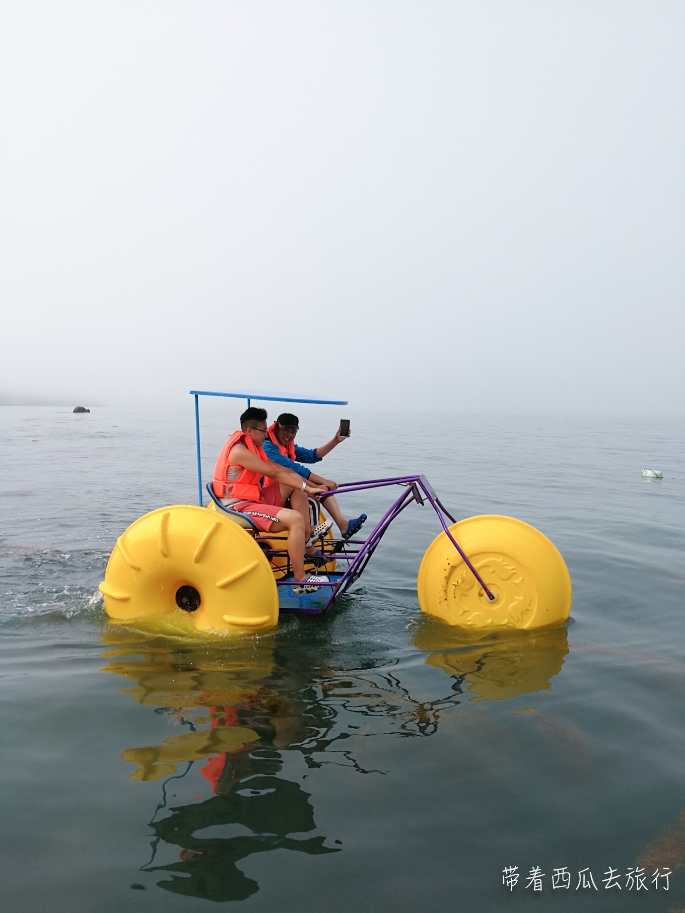 下午是自費(fèi)項(xiàng)目,黃渤匯(六個(gè)項(xiàng)目:快艇看黃渤海分界線/海上自行車/海釣/拔蟹籠/趕海),全手機(jī)拍攝。