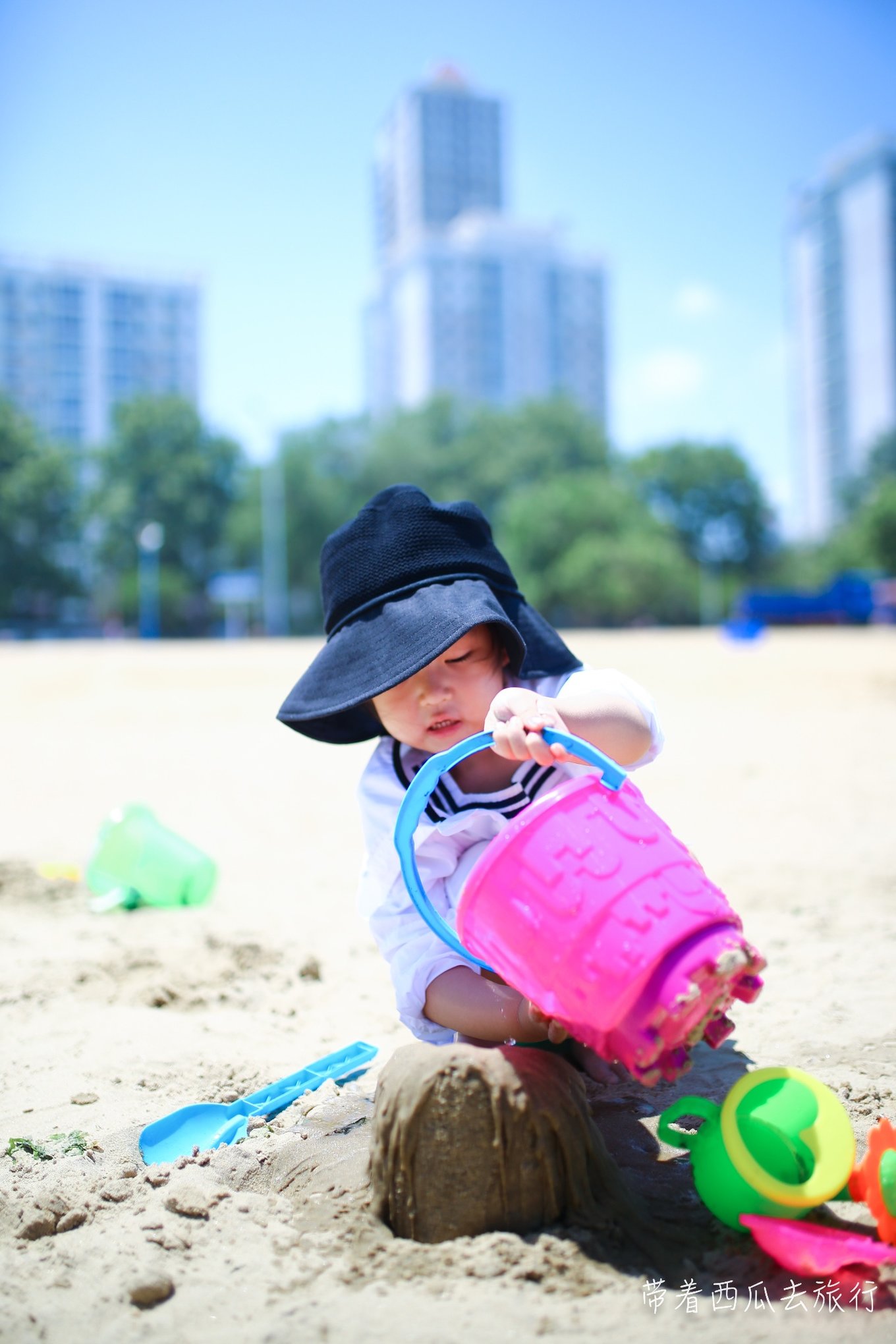 既然下不去水,那就在沙灘上玩吧,浴場旁邊買了工具,一個(gè)桶加一些小配件20元。