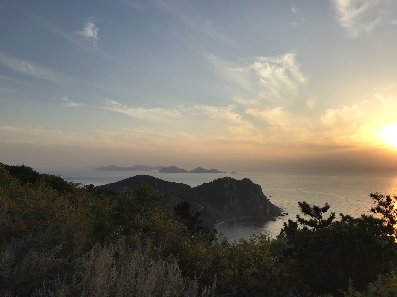 島上最高點(diǎn)是燈塔山,因山上燈塔而得名,山不高,從山前村委直接有大路到山下,從部隊(duì)的營(yíng)區(qū)門口順路而上,見到臺(tái)階,沿著臺(tái)階而上,直接到達(dá)燈塔。站在山頂,北望可以看到大連的老鐵山,這里無(wú)論是欣賞日出還是日落,都是絕佳之處。
