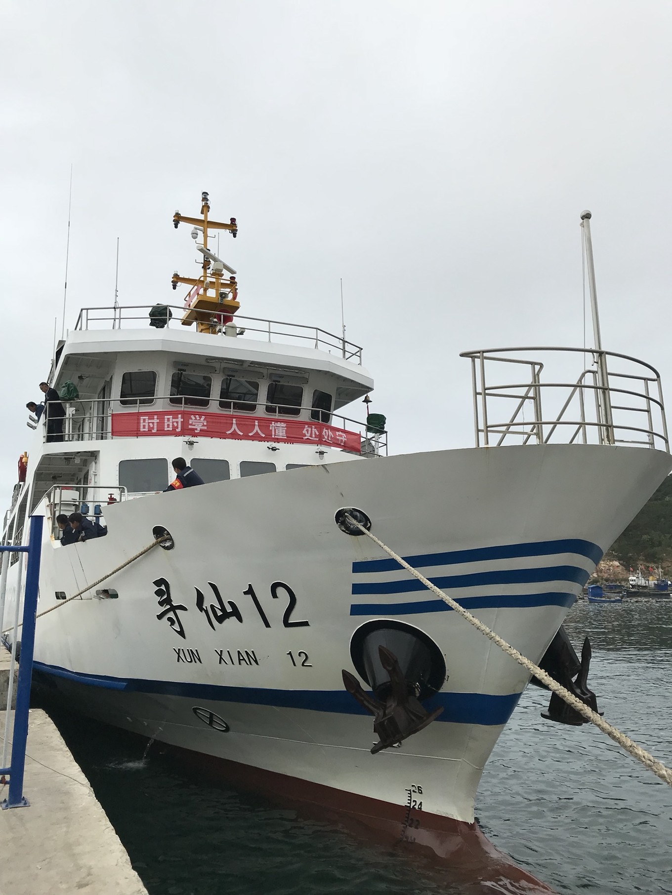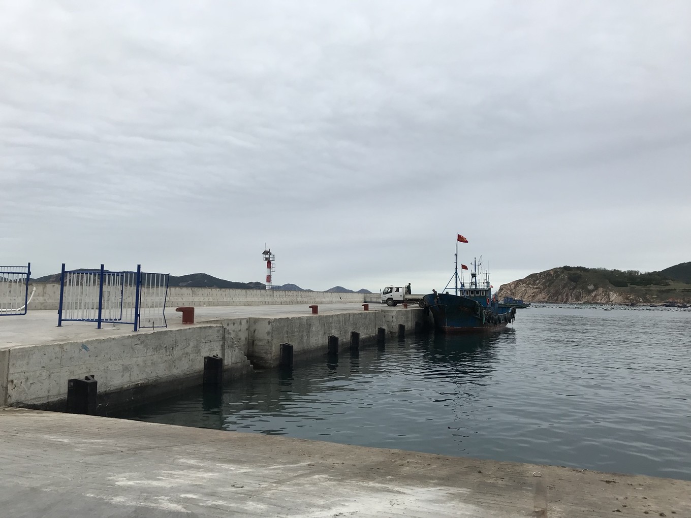 另外一班到北五島的船是每天上午9:30分的興龍?zhí)柣蚝妄執(zhí)柨蜐L船,可以帶車上船,不過(guò)島上無(wú)加油站,上島前記著加滿油。這班船要下午三點(diǎn)多才到北隍城島,晚上停在南隍城島,第二天上午返回蓬萊。