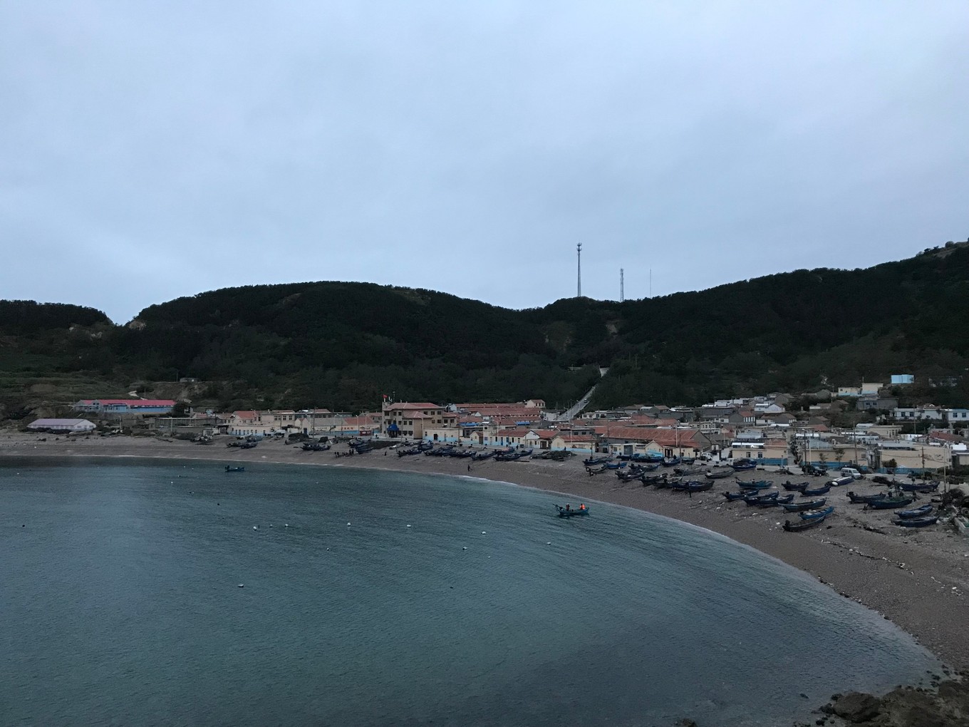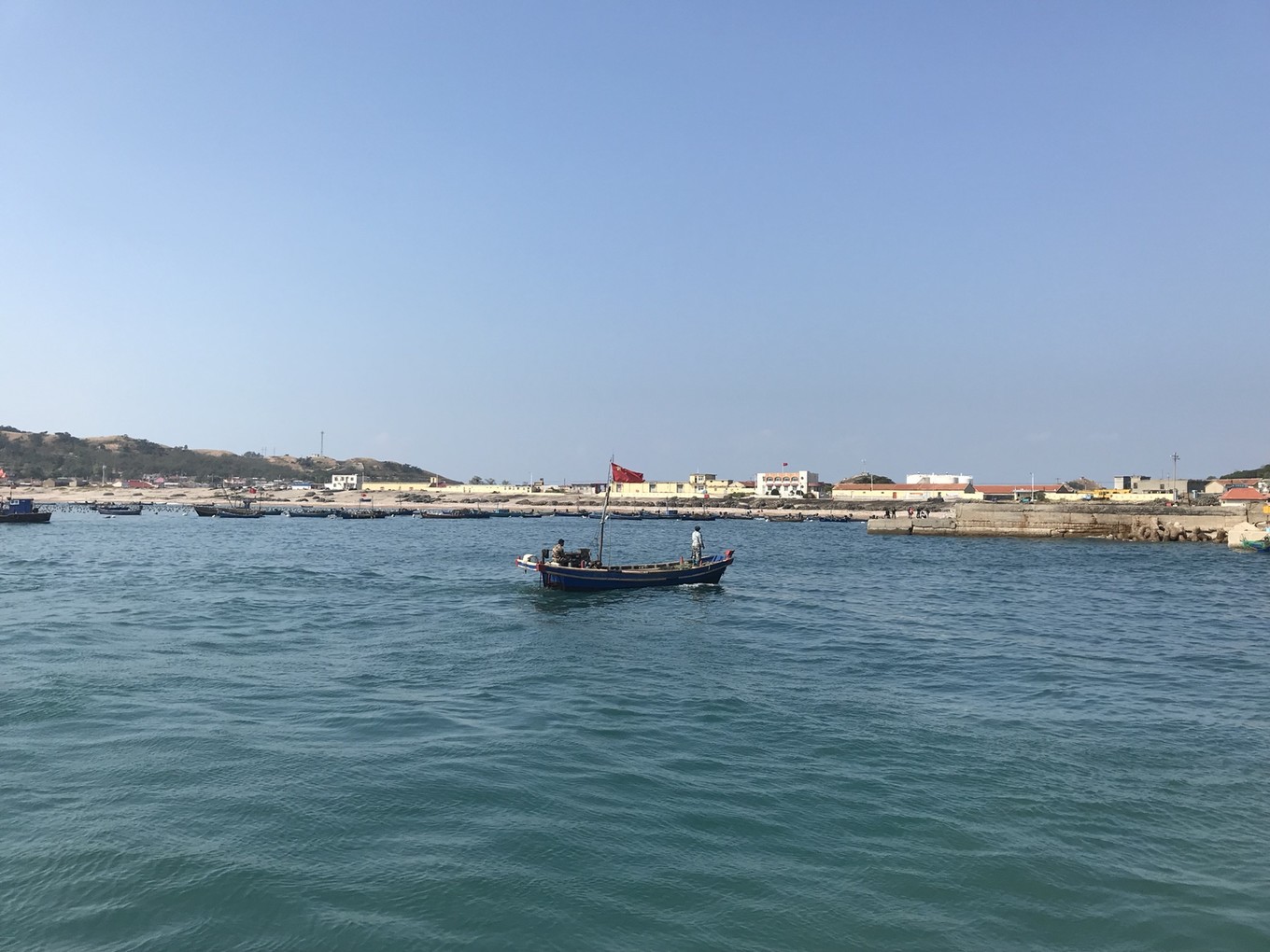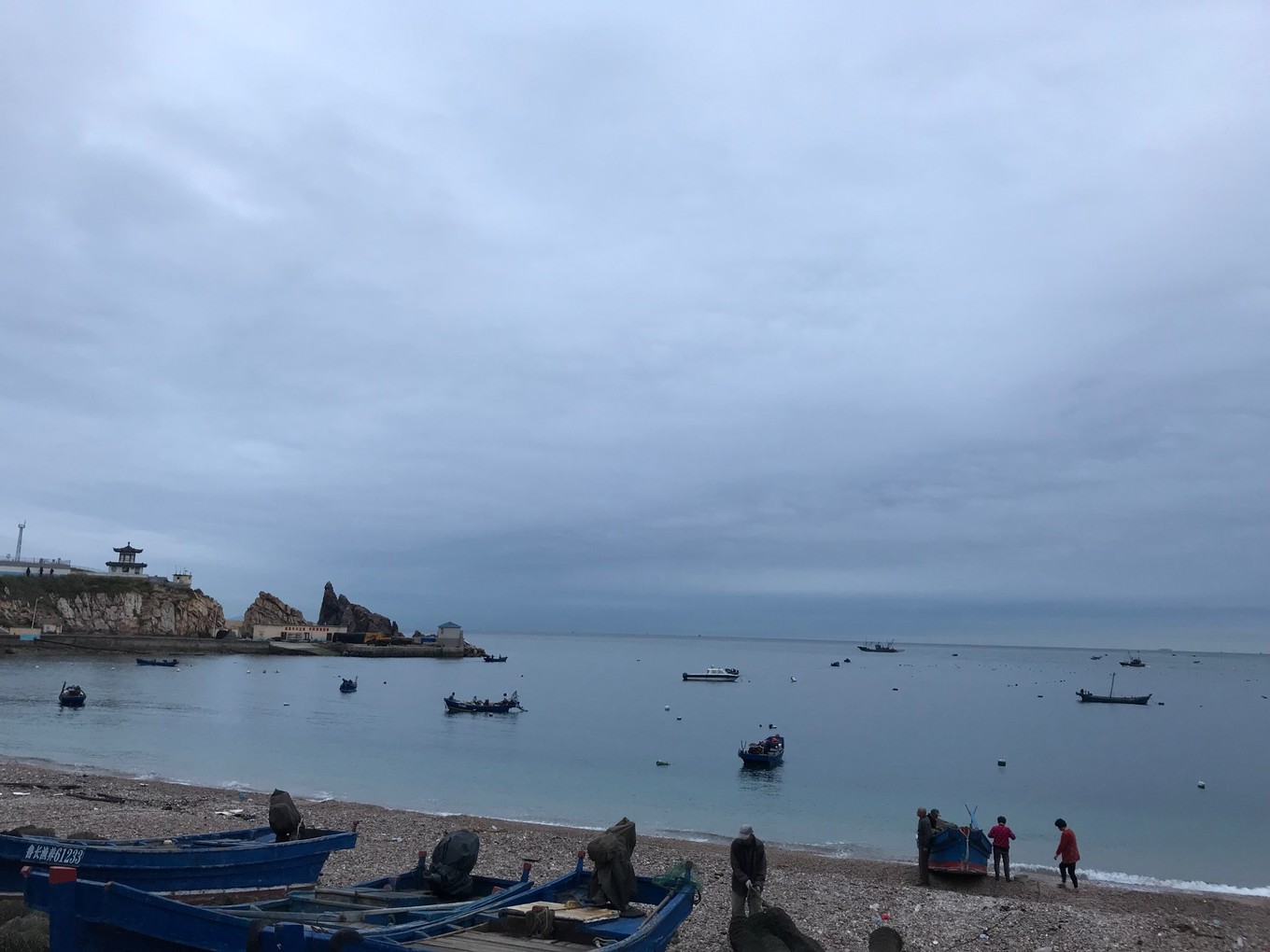 10月6日,天不作美,陰有小雨,我們雖然早起,卻無(wú)緣在島上看日出,只能在島上散步!從山前村媽祖廟旁的公路往北,穿過(guò)戰(zhàn)備隧道,到達(dá)山后村,山后村的碼頭要比山前村碼頭小很多,這里主要是??繚O船。漁民們都很辛苦,早早就出海作業(yè),碰到兩位老漁民,一位80多,另一位70多,還都自己駕船出海!我們幫兩位老人將漁船從海灘推入海中,就在船快入行的一剎那,老人飛躍上船,身手很是敏捷!島上人家基本是路不拾遺,夜不閉戶,大家互相都彼此認(rèn)識(shí),誰(shuí)是島外來(lái)的,一眼就可以看出來(lái)!