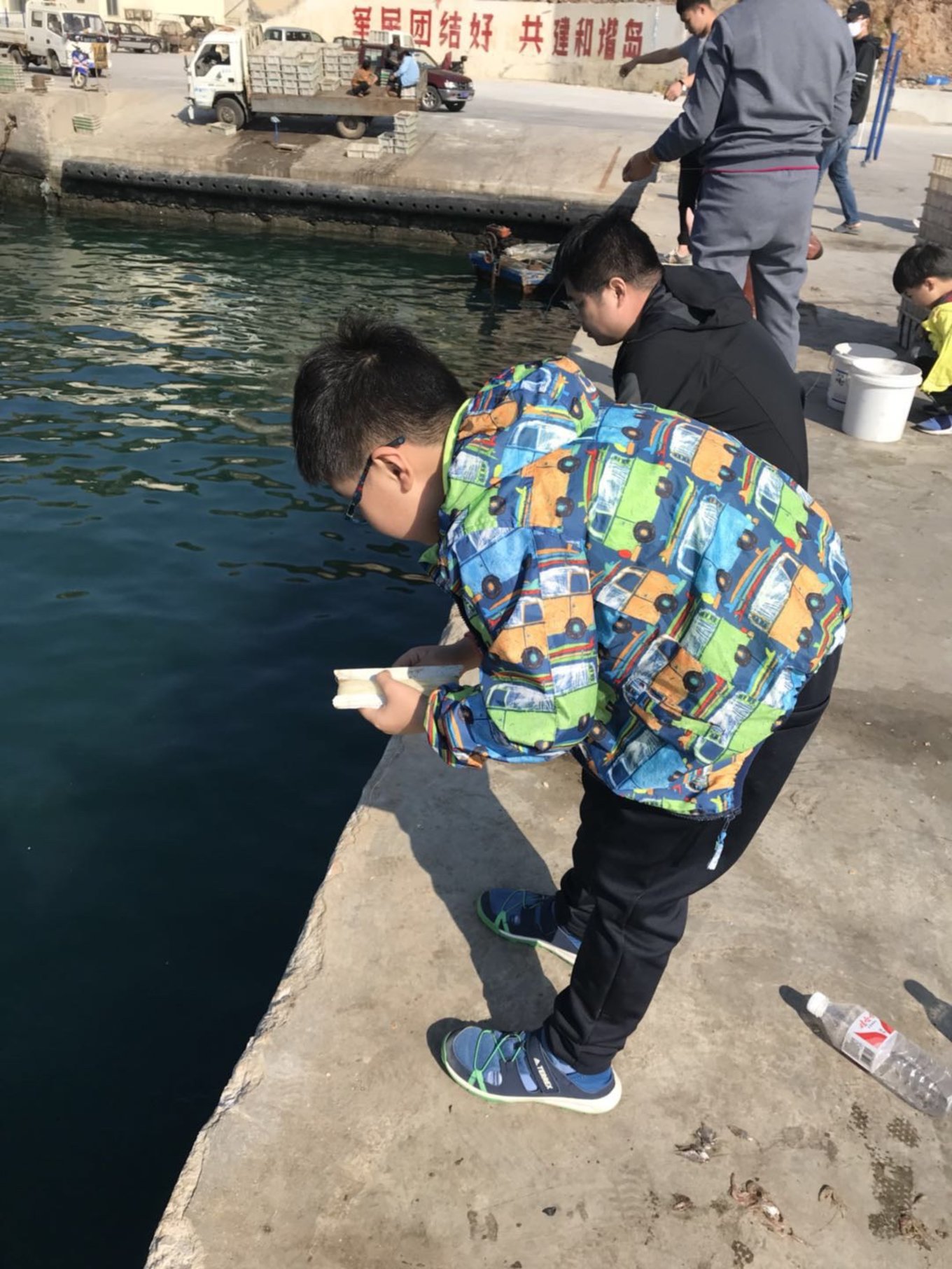 在這小島上吃飽了能干什么?那就是釣魚了!夏季時(shí)可以趕?;虬龊a烎~,現(xiàn)在這個(gè)季節(jié),這些活動(dòng)已不太適合展開,我們決定到碼頭去手把線釣魚!在這里釣魚基本不需要技巧,一把魚線,綁上魚鉤,隨便掛些餌料,魚兒便會(huì)一條接一條,前仆后繼的咬釣而上!