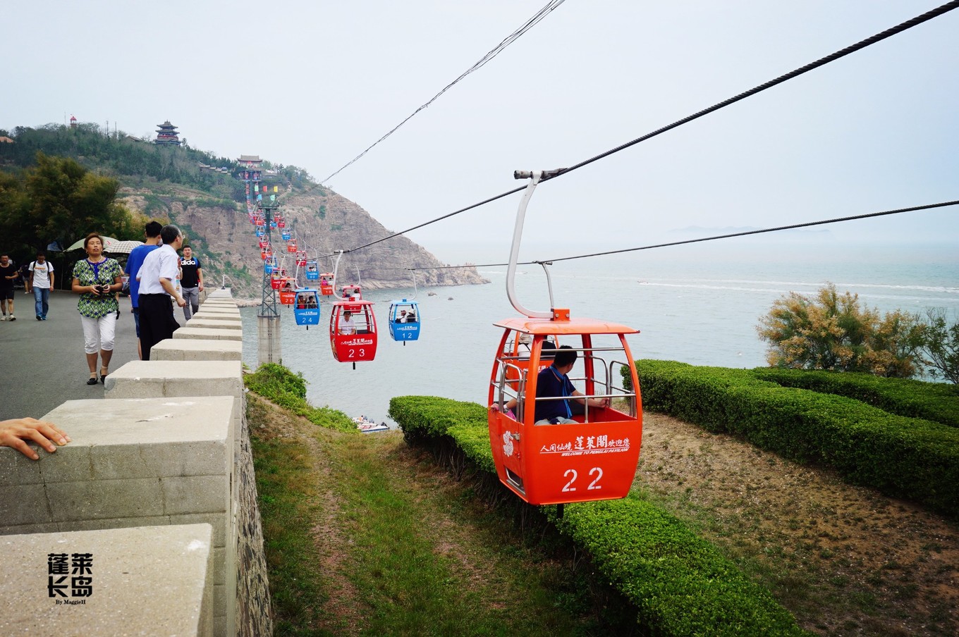 田橫山與丹崖山之間架起了一條跨海索道,這里成為蓬萊閣旅游區(qū)的一個組成部分。在跨海索道上乘坐纜車,仰望前后兩側(cè)的仙山瓊閣,俯瞰大海的萬里澄波,聯(lián)想三神山的迷人神話,會不由自主地產(chǎn)生一種飄飄欲仙的感覺。