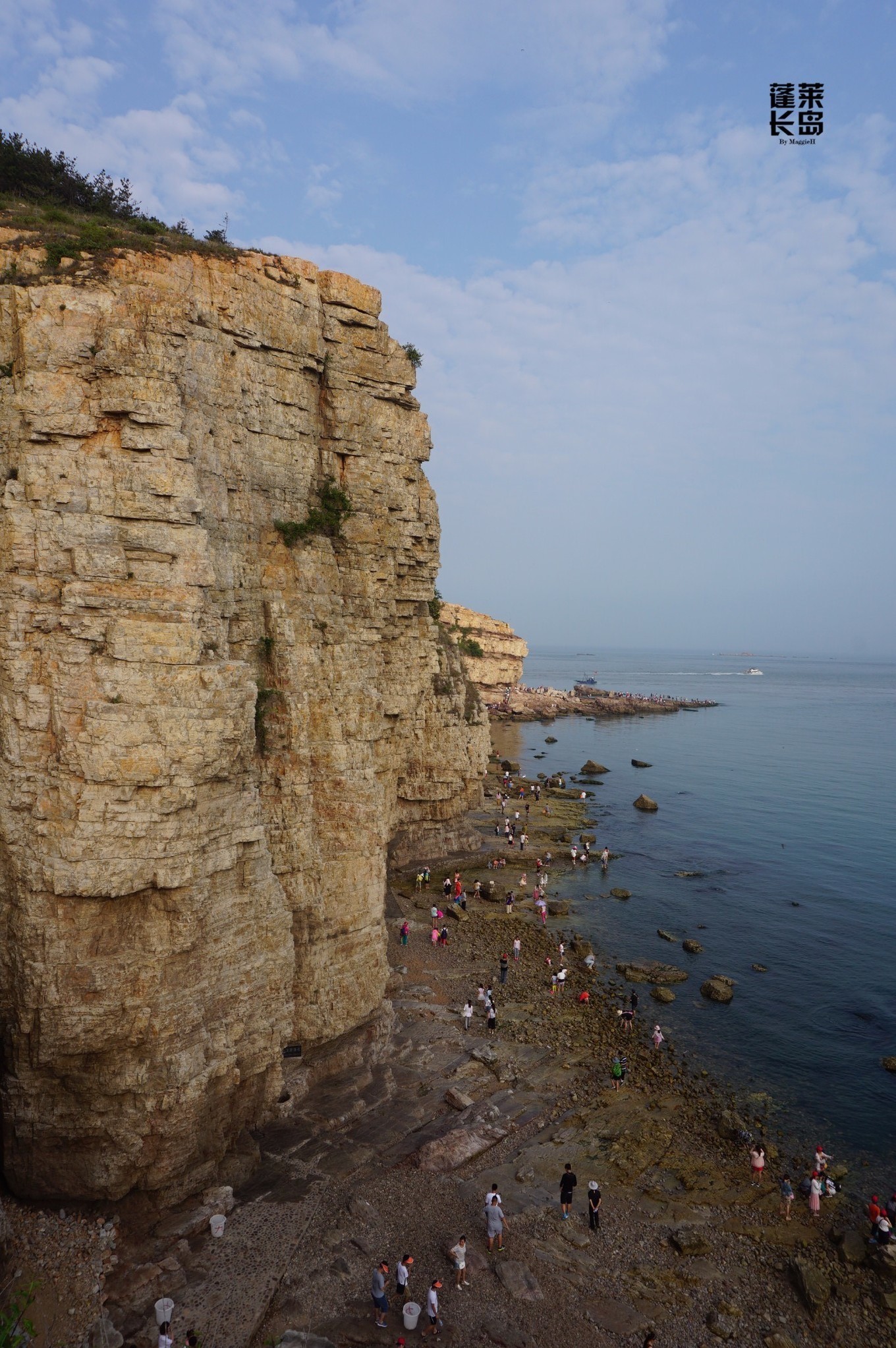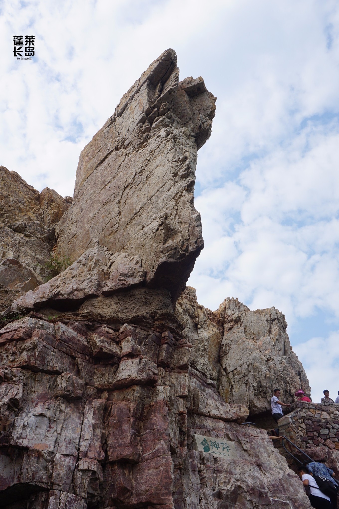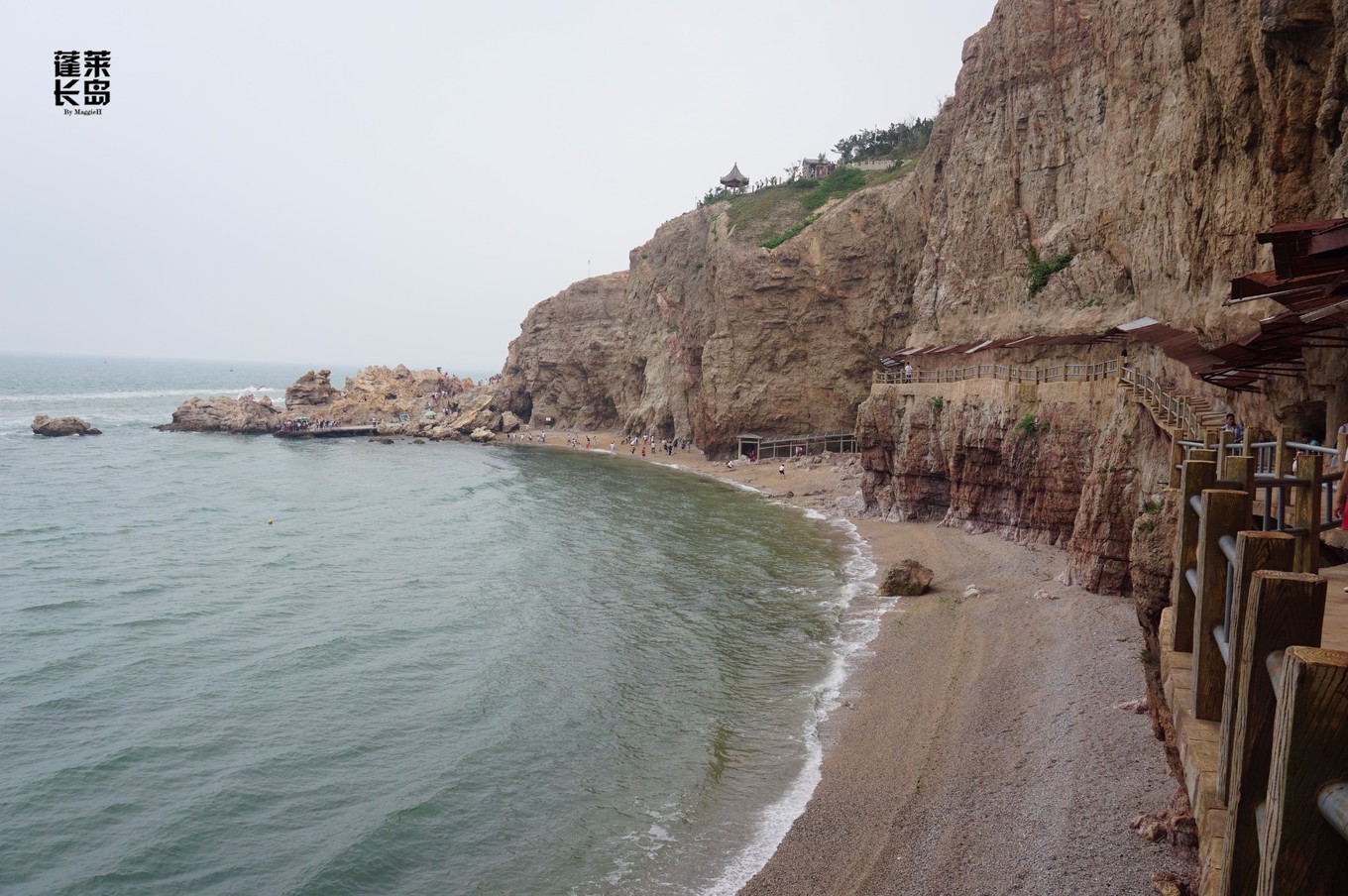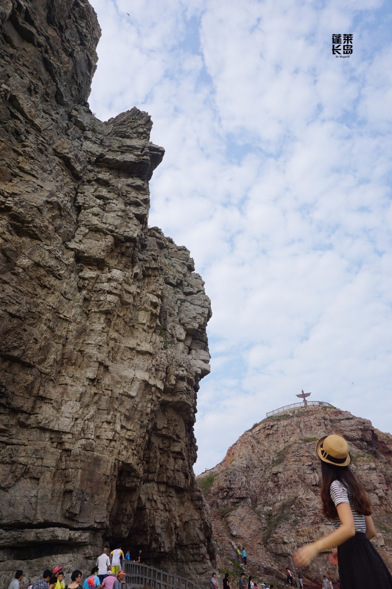 在北長山島西北角,由于千萬年來風(fēng)浪不舍晝夜的淘滌,天然形成了巍峨與險峻的九丈崖,大于90°的傾斜,使崖上崖下形成兩個天地,大有“陰陽割昏曉”的意境。