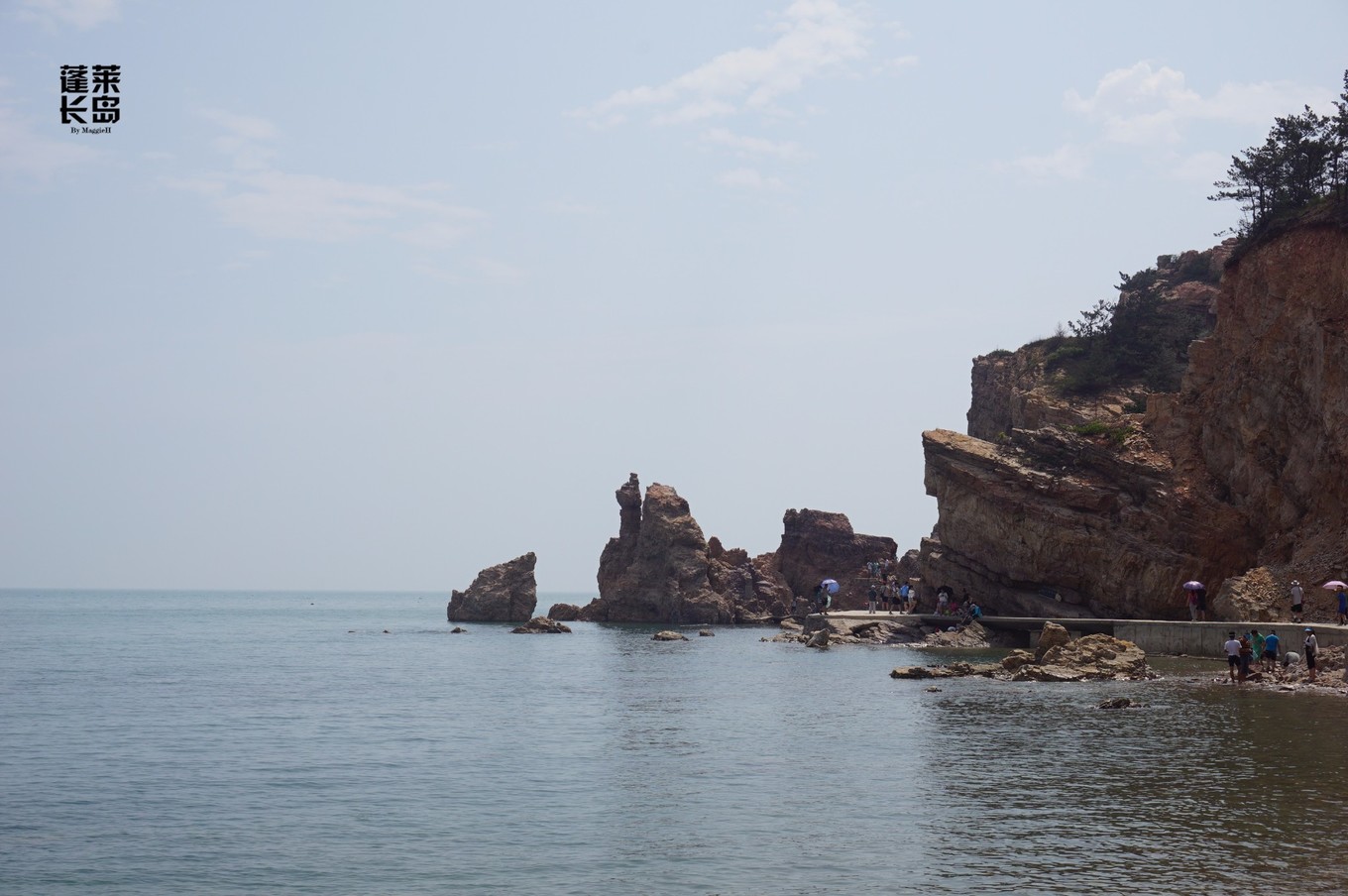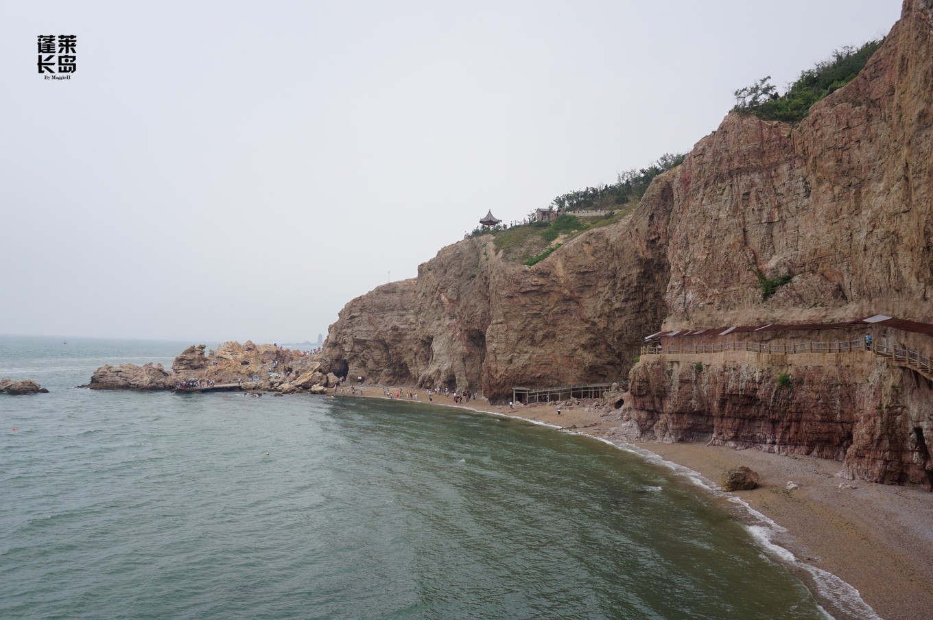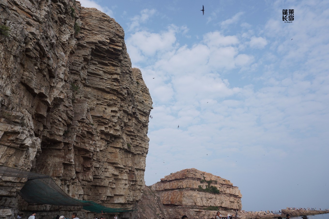 在北長山島西北角,由于千萬年來風(fēng)浪不舍晝夜的淘滌,天然形成了巍峨與險峻的九丈崖,大于90°的傾斜,使崖上崖下形成兩個天地,大有“陰陽割昏曉”的意境。
