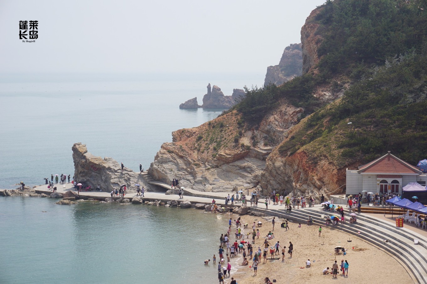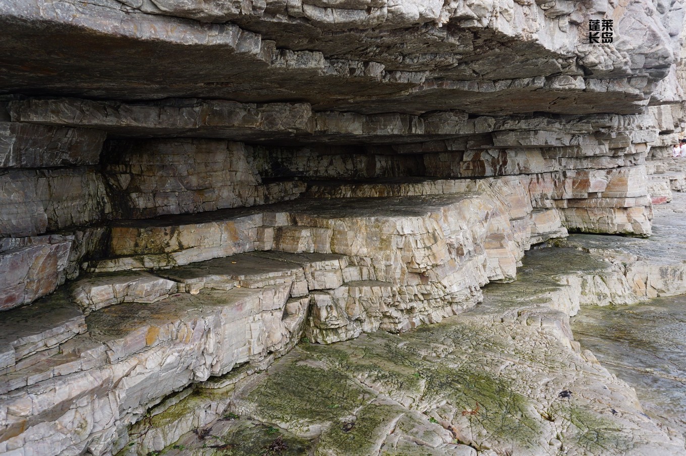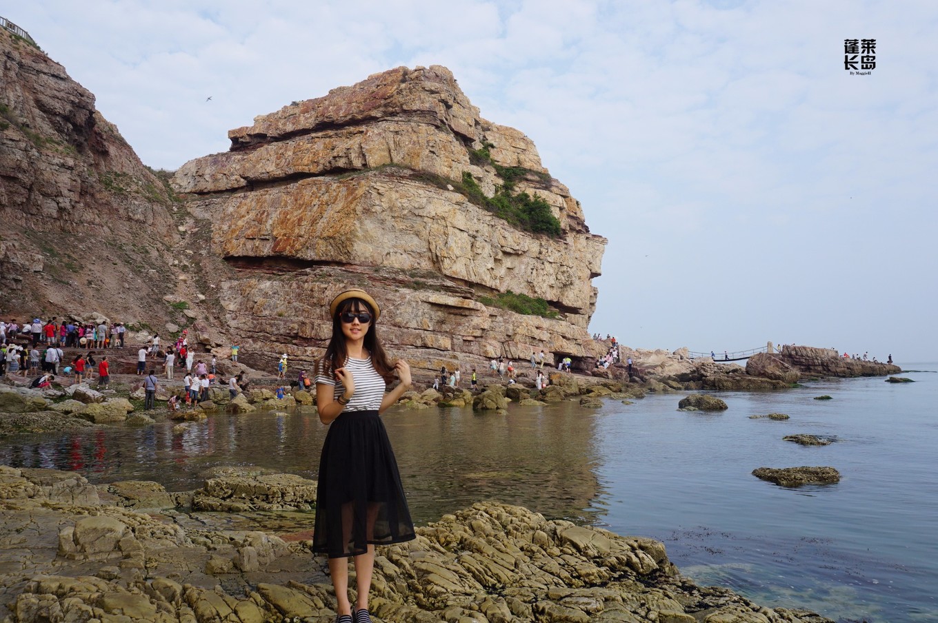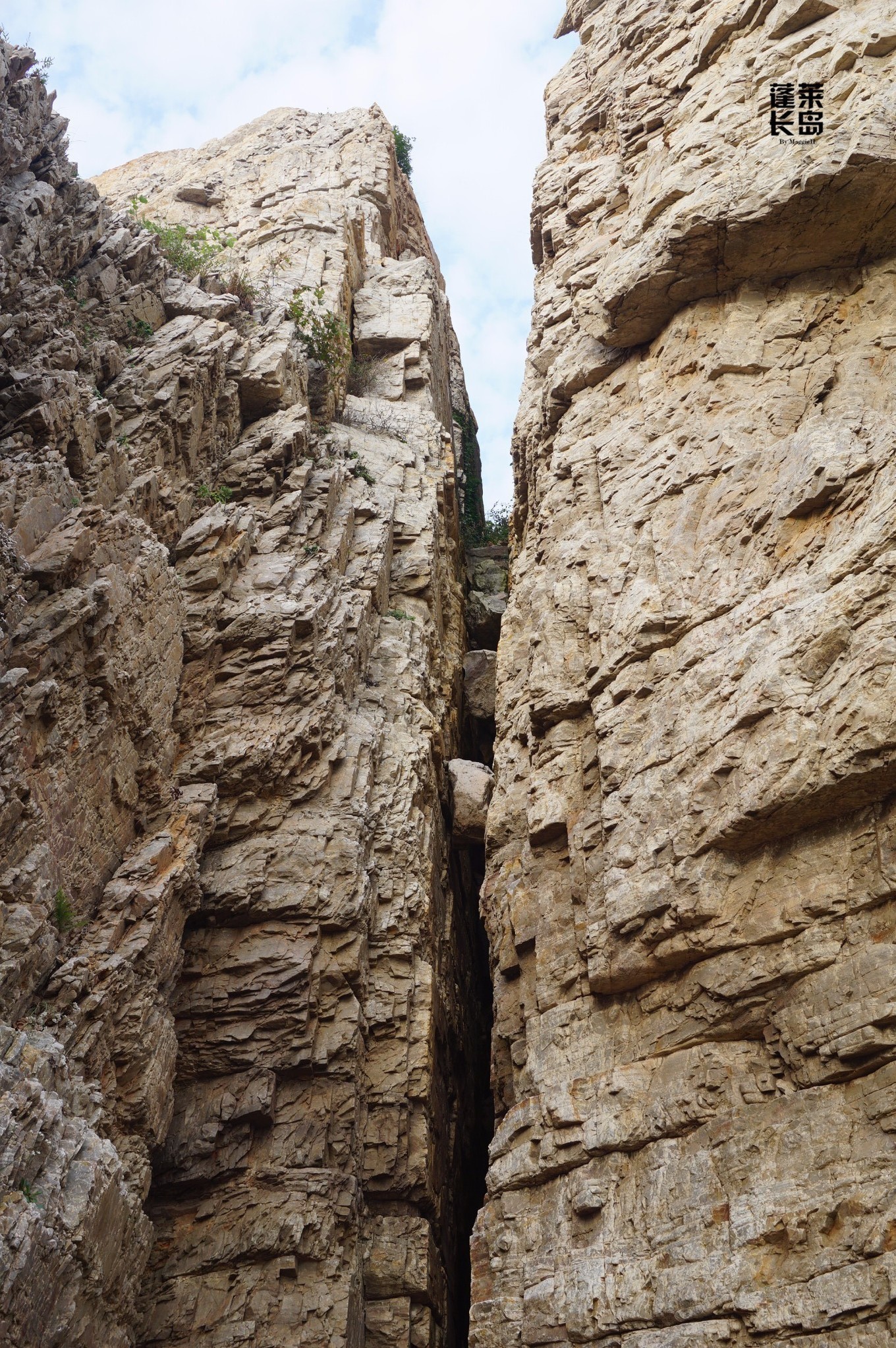在北長山島西北角,由于千萬年來風(fēng)浪不舍晝夜的淘滌,天然形成了巍峨與險峻的九丈崖,大于90°的傾斜,使崖上崖下形成兩個天地,大有“陰陽割昏曉”的意境。