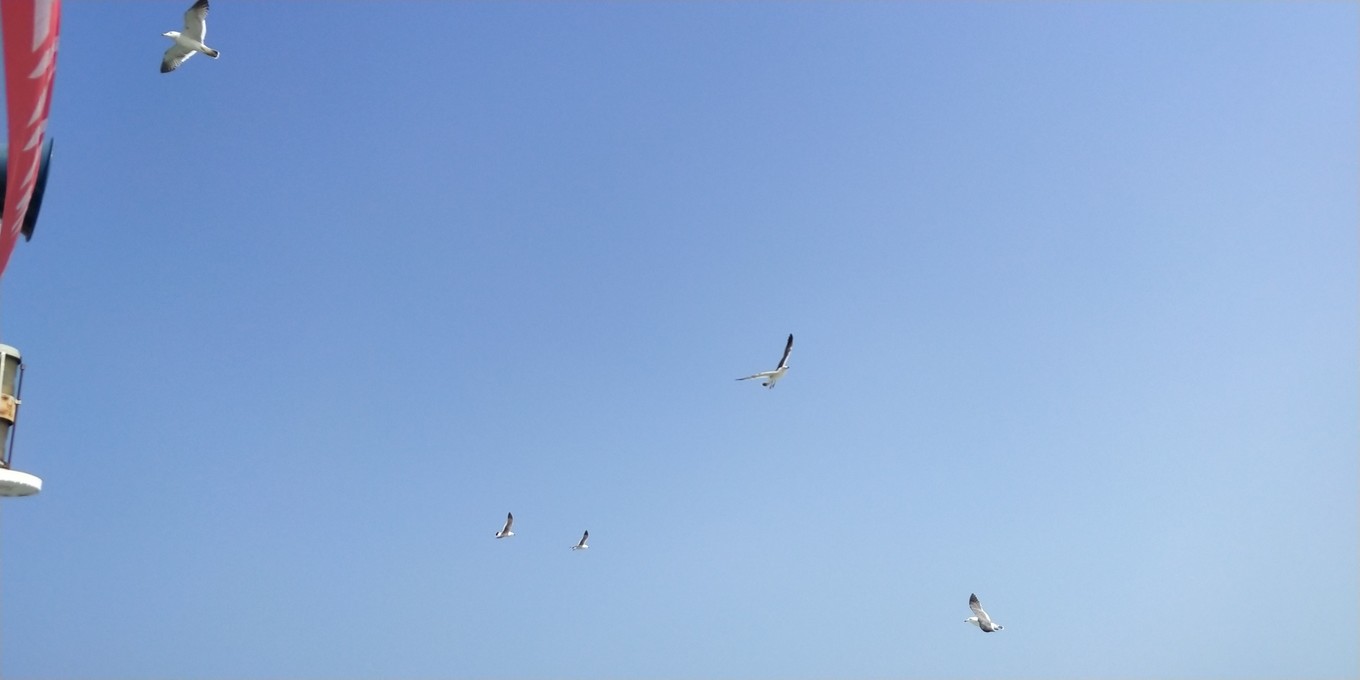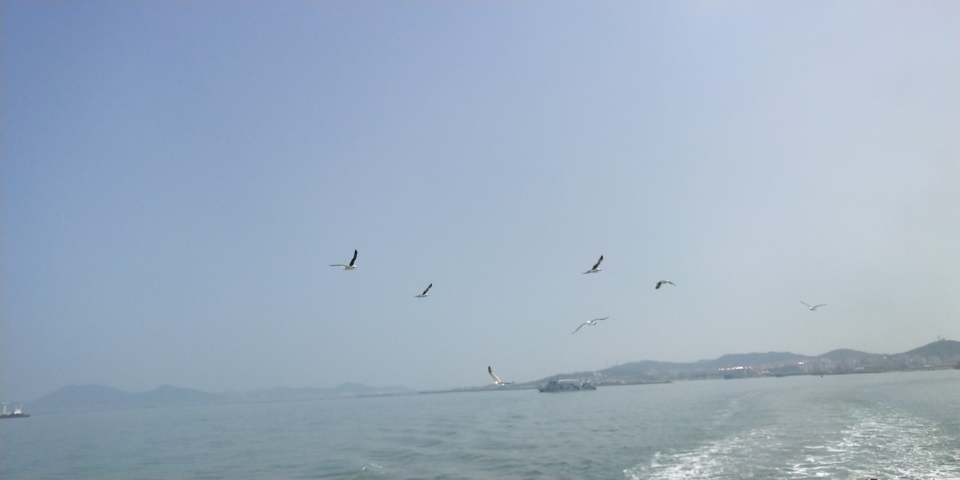 到了港口直接買(mǎi)票,船比來(lái)時(shí)的小,不知道那些不同號(hào)碼的船到底是啥意思,坐了1個(gè)多小時(shí)才到蓬萊港口。船尾可以看看海鳥(niǎo),二樓被攔起來(lái)要10塊錢(qián)才能上去喂鳥(niǎo),索性就下面看看~