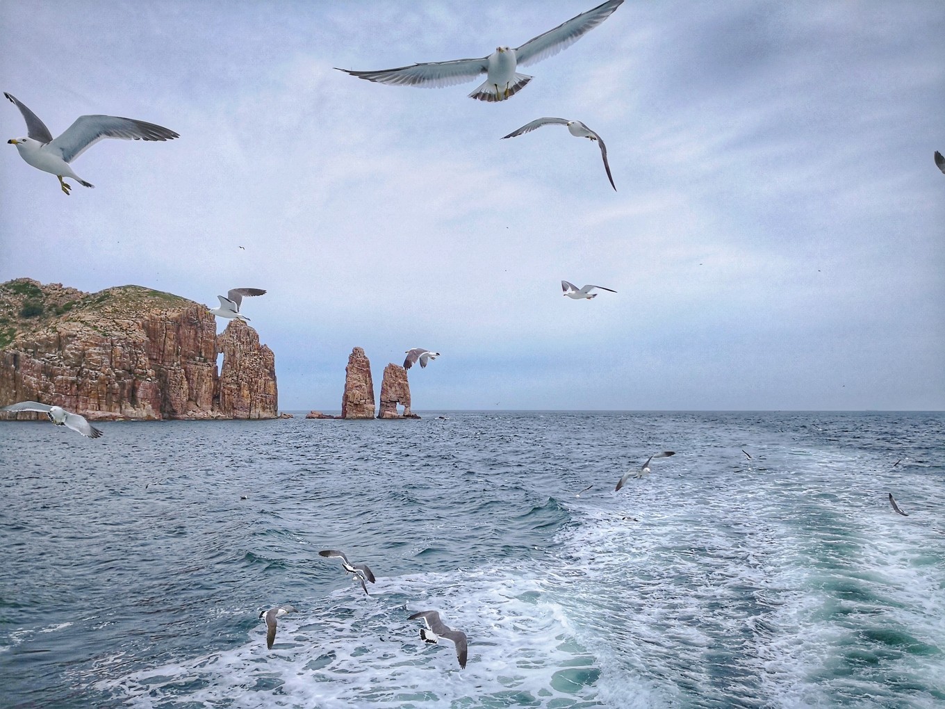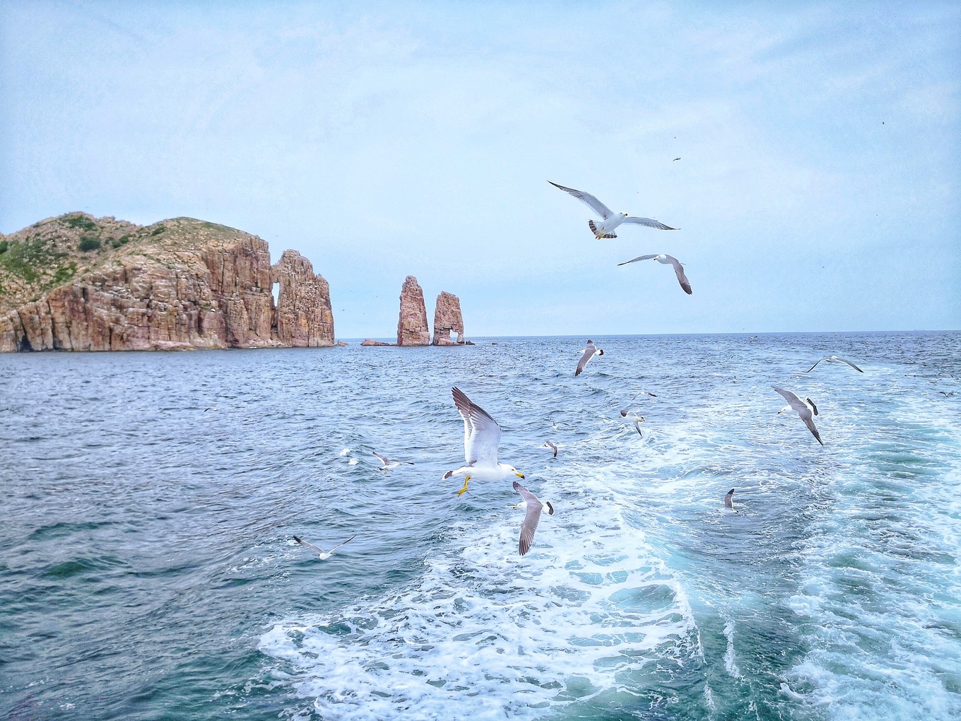 Day3周日:冷大姐提前幫我們預(yù)定了萬鳥島的行程,200元航海四小時(shí),到達(dá)萬鳥島以后返程,中途登陸廟島,游覽半小時(shí)以后開船一刻鐘就回到長(zhǎng)島啦。長(zhǎng)島是有一家叫做海上游的公司,負(fù)責(zé)我們輪渡和整個(gè)航行行程,途中有講解,還可以喂海鷗。