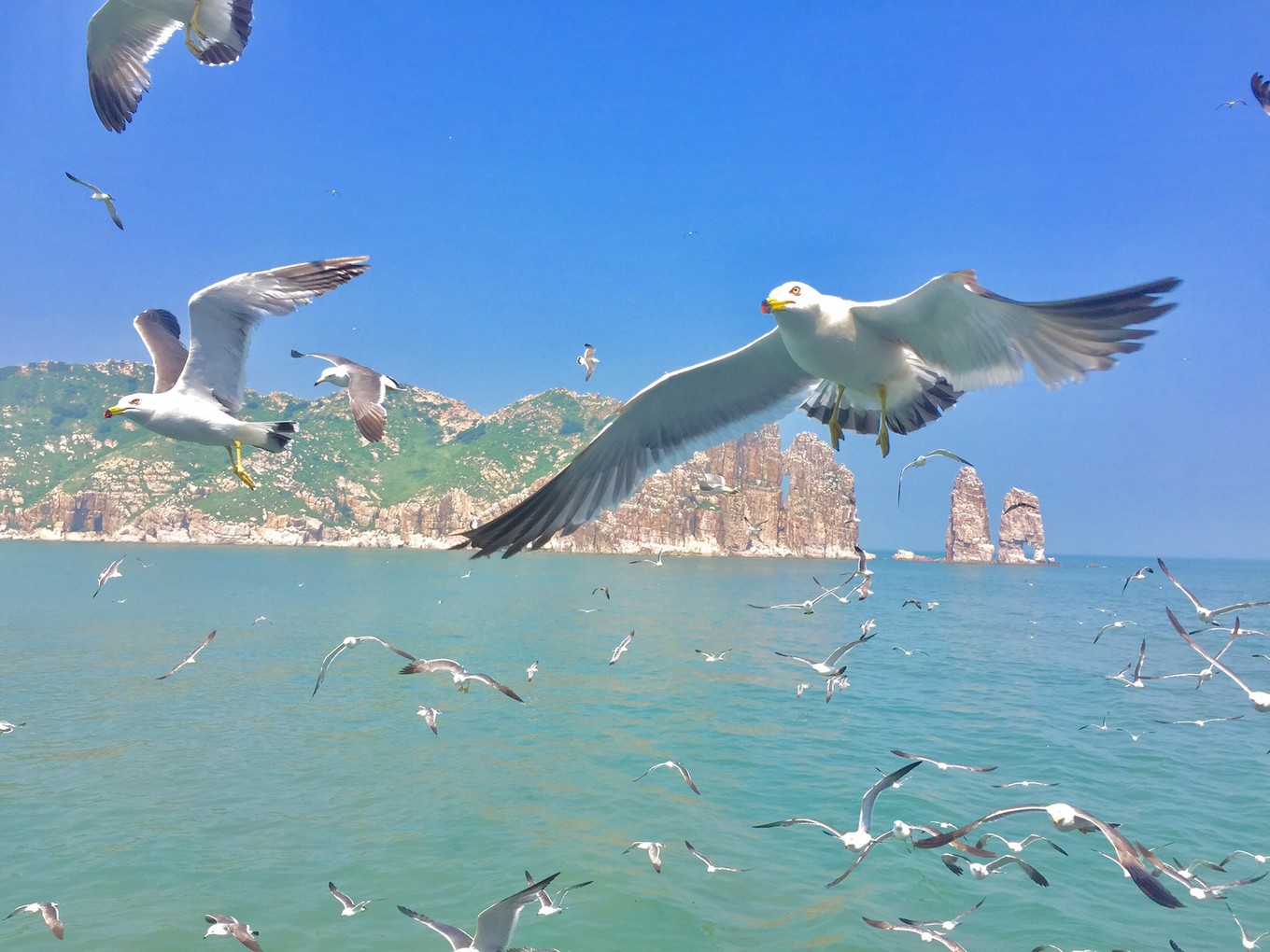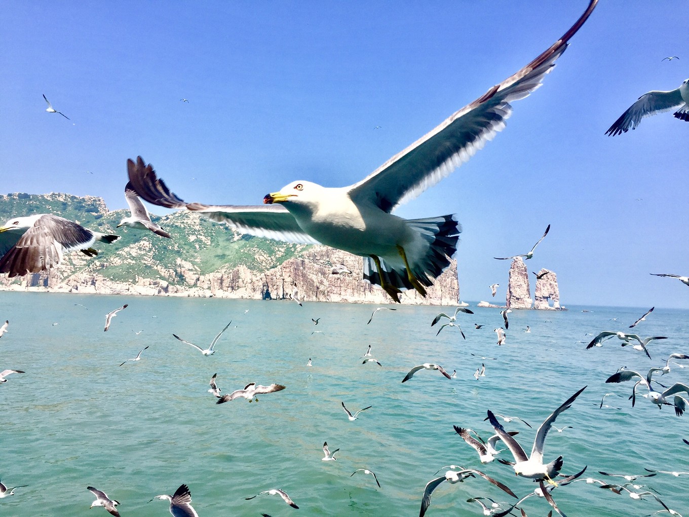 然后再來(lái)說(shuō)萬(wàn)鳥島,這個(gè)真是有個(gè)題外話的長(zhǎng)篇大論。出海乃是海島游必不可少項(xiàng)目。長(zhǎng)島著名的便是群礁群島,當(dāng)然最愛(ài)之一便是萬(wàn)鳥島,不能登島,渡輪??繊u邊,與成千上萬(wàn)海鷗零距離接觸。當(dāng)這些異己的生物在你面前呈現(xiàn)出生命的擴(kuò)張力,大自然的秘密,所有的鬼斧神工之作,都讓你啞然失聲只剩唏噓。