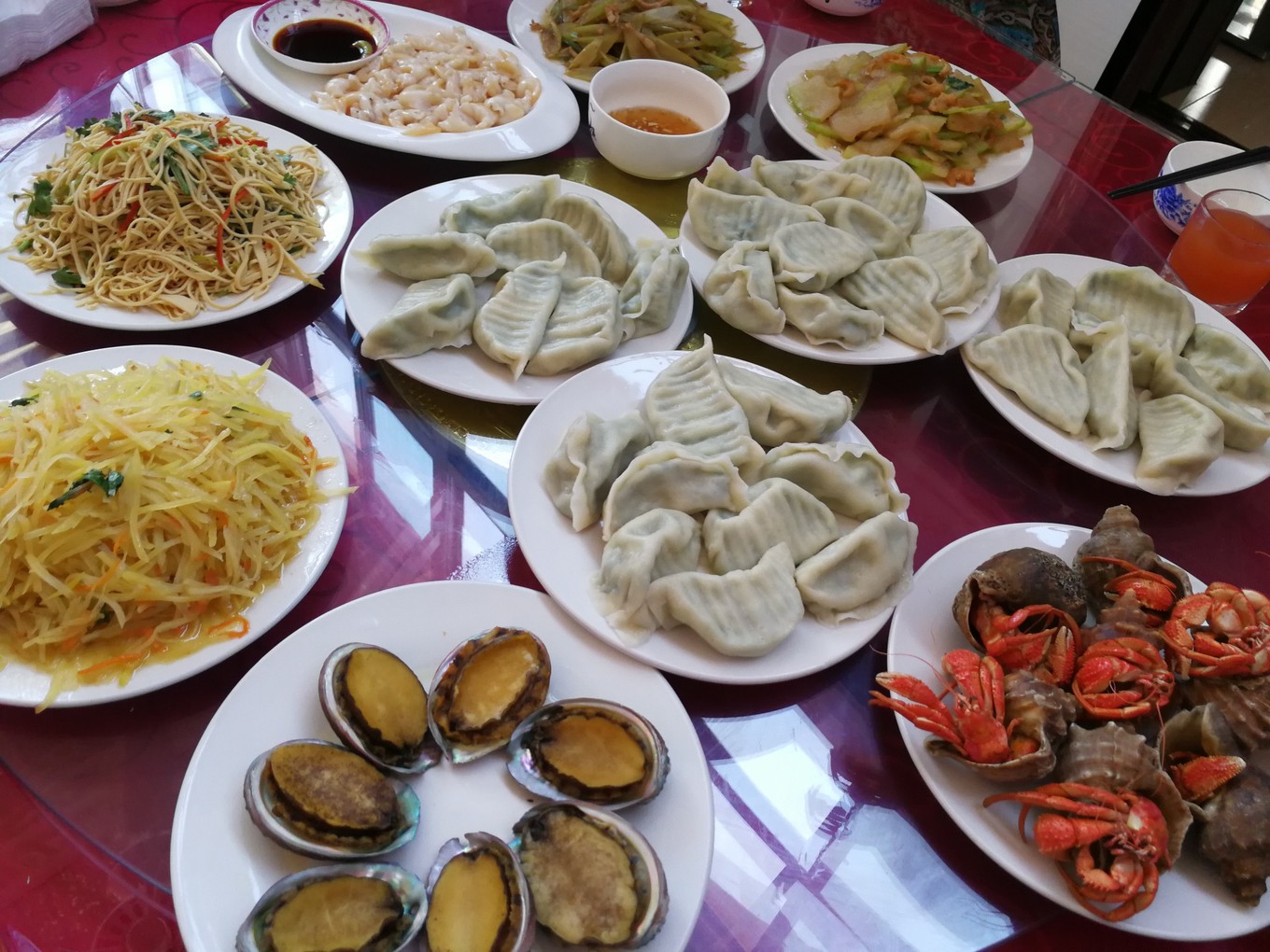 這是本次行程中我最愛的一餐,鲅魚餃子,每個餃子都有拳頭大小,山東漁家太實在啦,鲅魚肉白嫩爽滑,配上少許的綠色蔬菜,餃子餡顏色清爽、鮮美多汁,停不了筷子呀,對阿姨的廚藝贊不絕口,先上了4盤瞬間被我們風卷殘云,阿姨見我們愛吃,有加了2盤,也被一掃而空,美味不言而喻了吧?,F(xiàn)在想起來還留口水呢,呵呵呵呵。