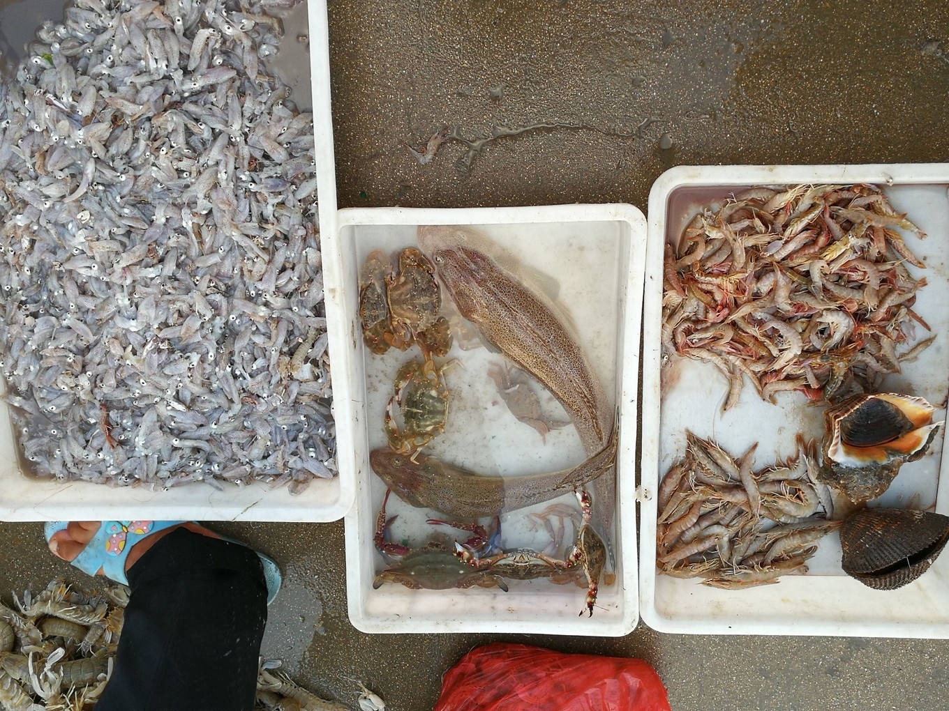 晚餐后海邊散步,返航的小漁船在碼頭現(xiàn)場銷售今天的收獲,不少當?shù)厝瞬戎c來搶購