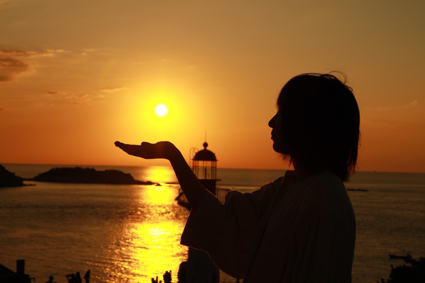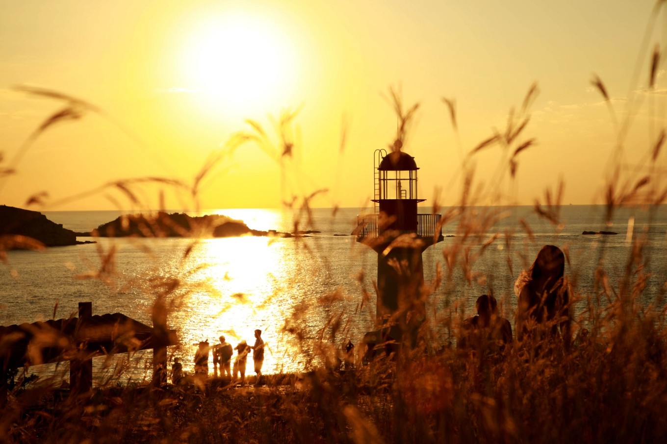 一路走著,等著,夕陽(yáng)西下。光線越來(lái)越暖,太陽(yáng)離海平面越來(lái)越近。
