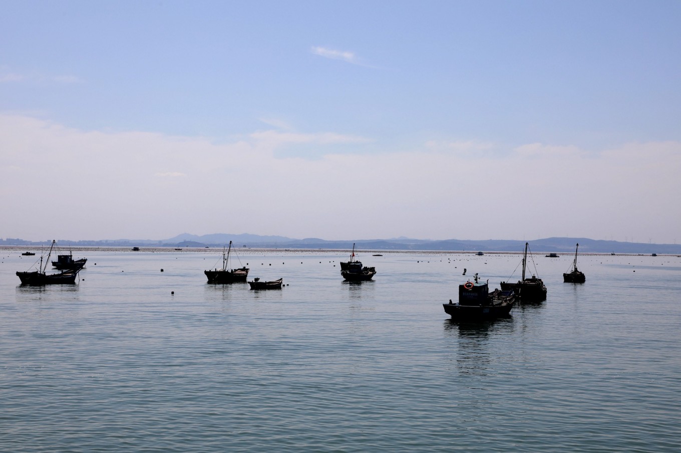 海面上的漁船。零零散散,安安靜靜,一片愜意。