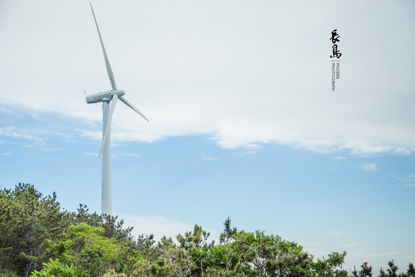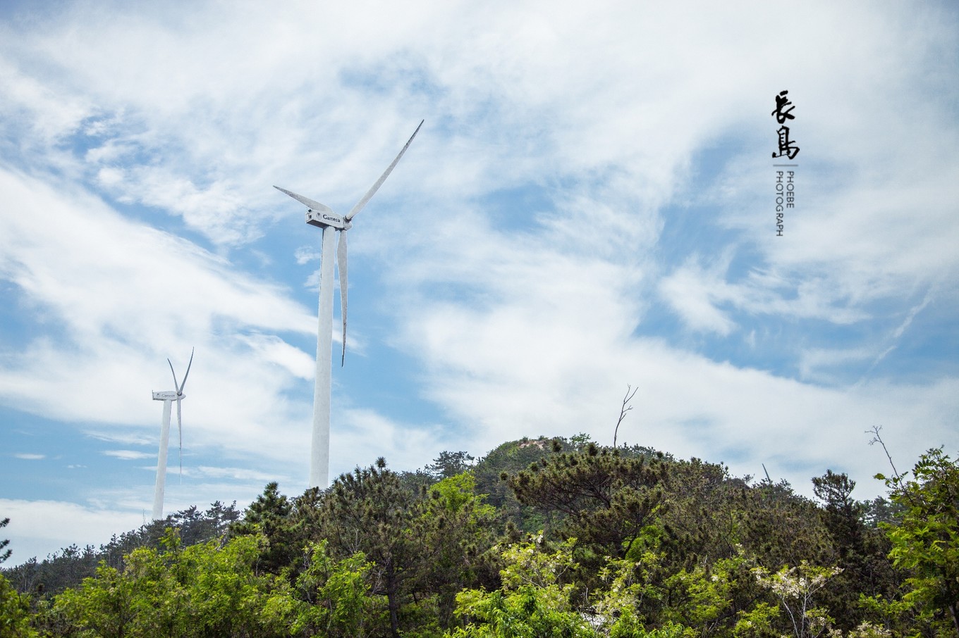 林海公園中,發(fā)電風(fēng)機(jī)矗立在路的兩側(cè)。當(dāng)?shù)厝苏f這些風(fēng)機(jī)發(fā)的電并不只供長(zhǎng)島使用,還要通過海底電纜輸送給隔海相望的蓬萊。