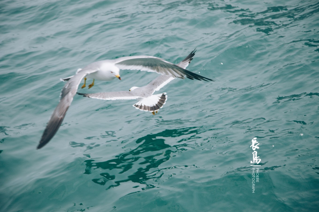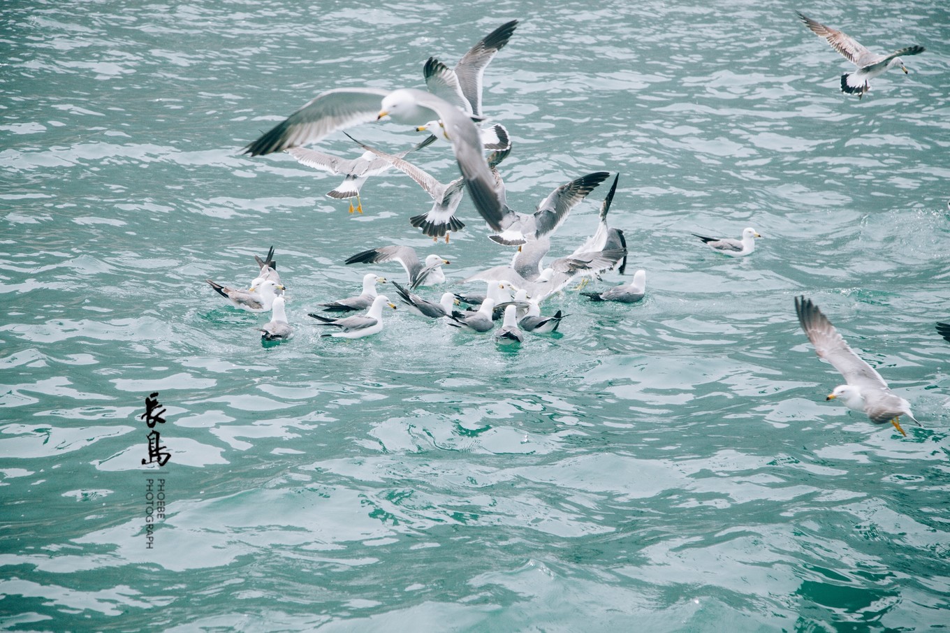 船開沒多久,就有成群的海鷗追隨著船尾飛行。