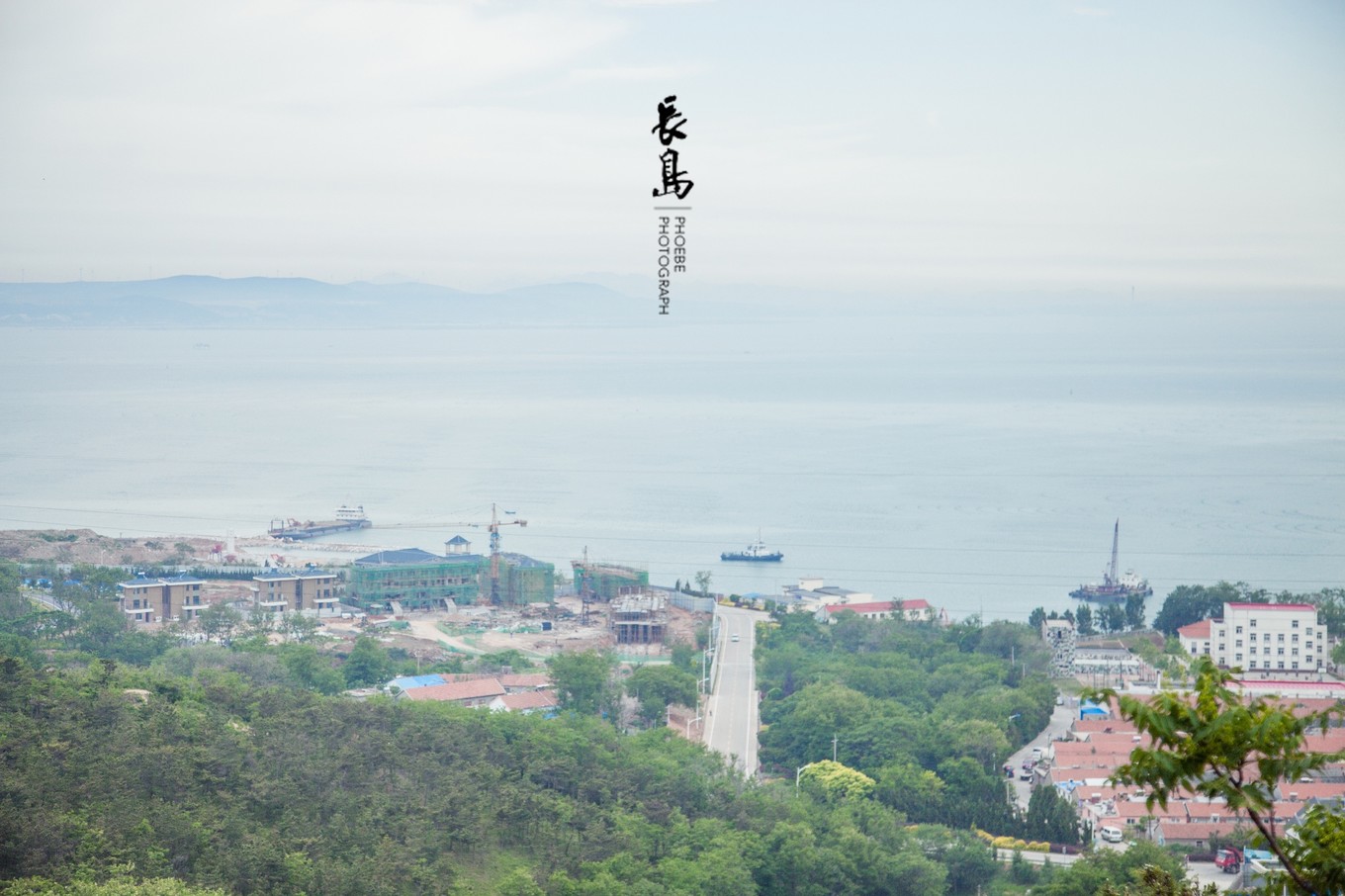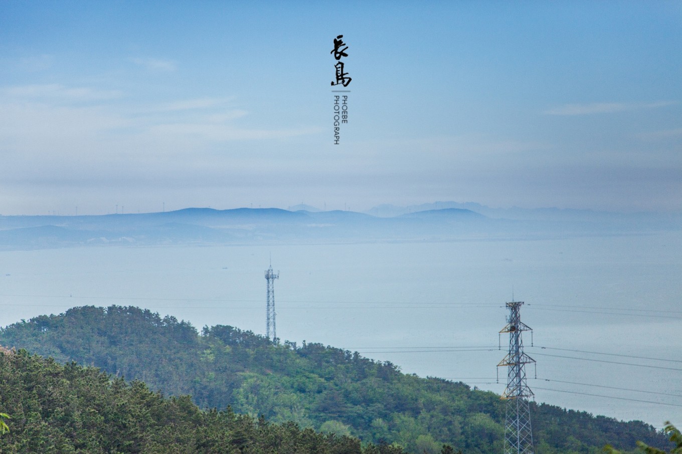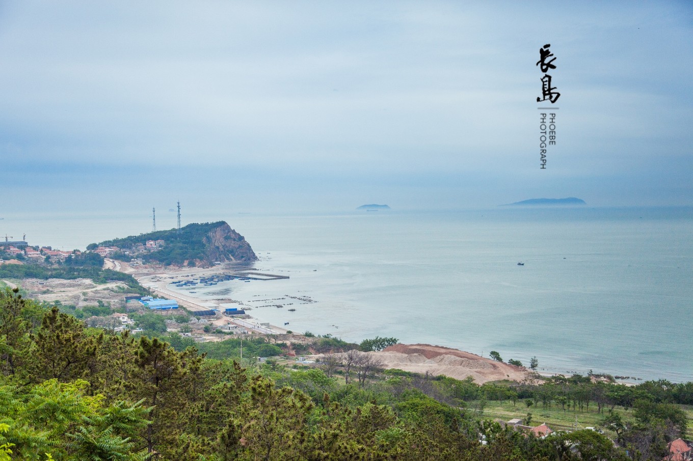 站在高處,看海天一色,海岸線處的小山若隱若現(xiàn)。