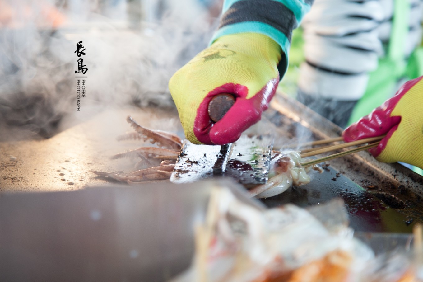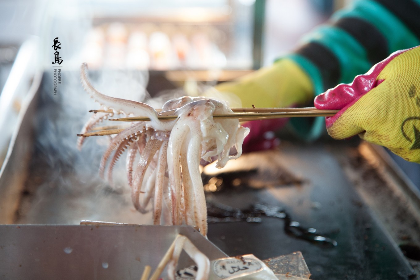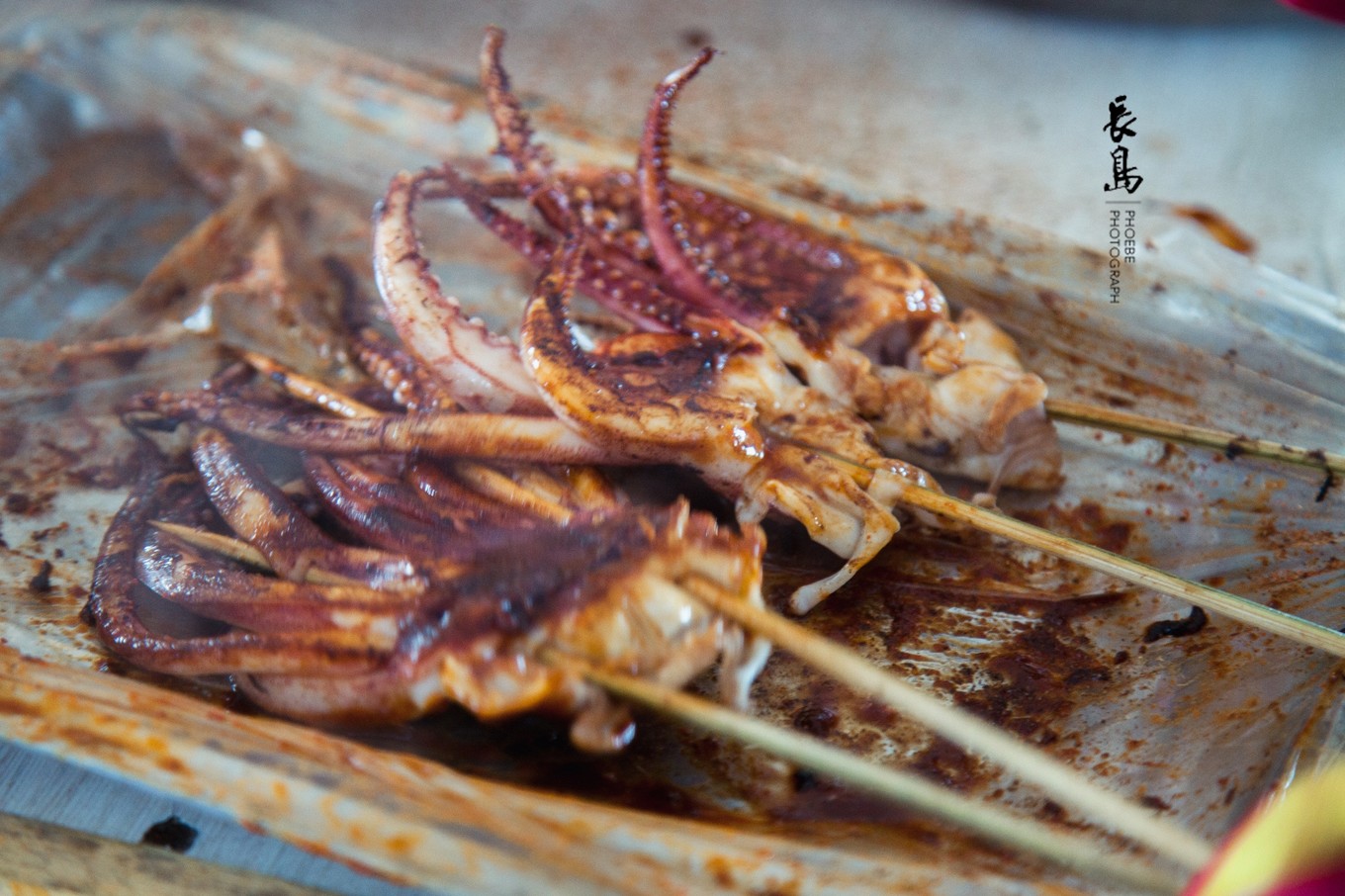喂完海鷗,自己也有些餓了。游船上滋滋飄香的鐵板魷魚真是美味,來一串也算是慰藉一下自己的小胃吧。