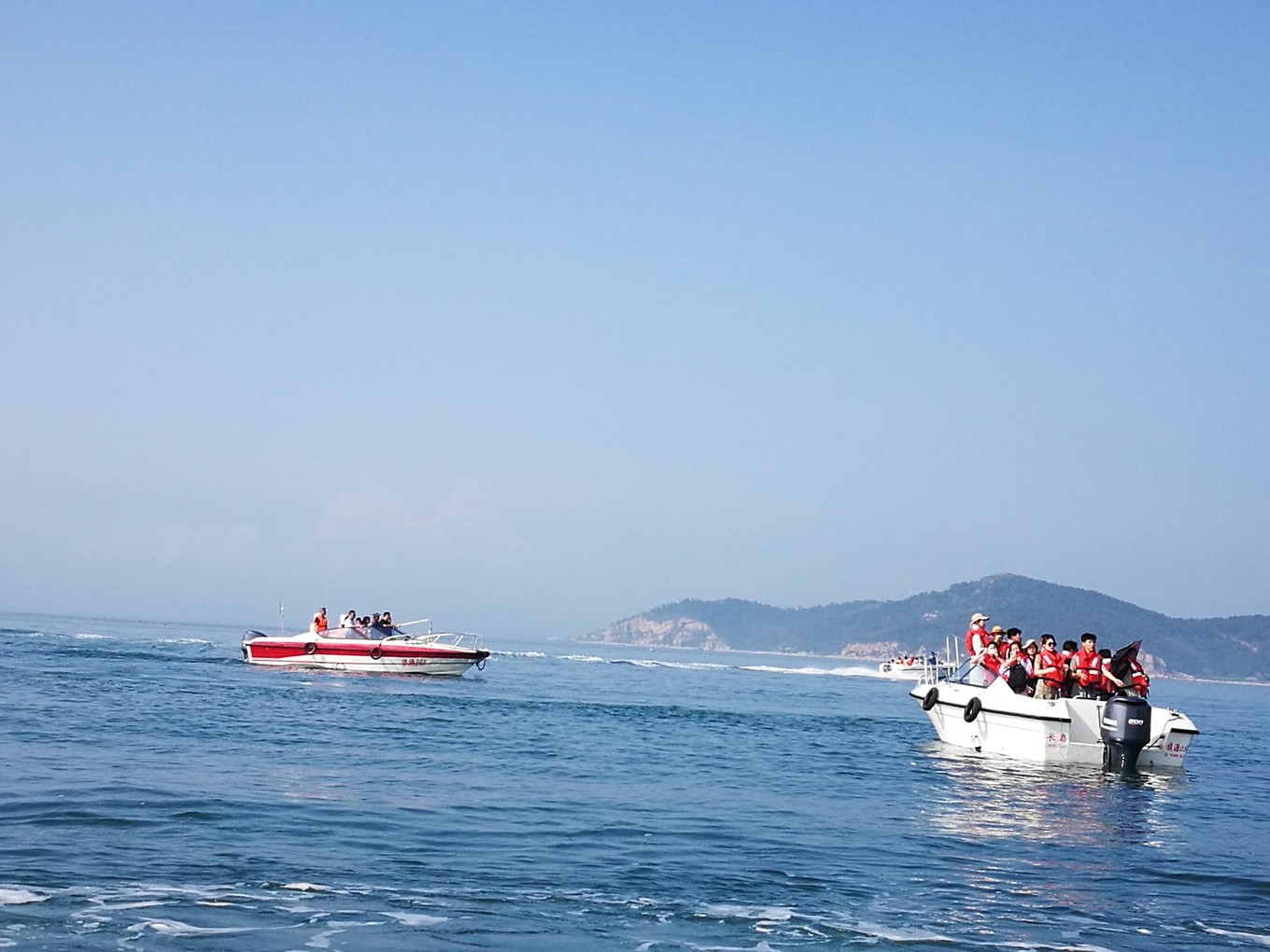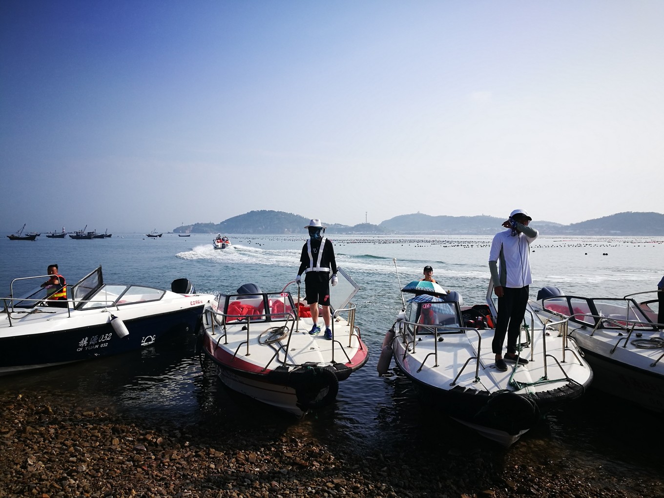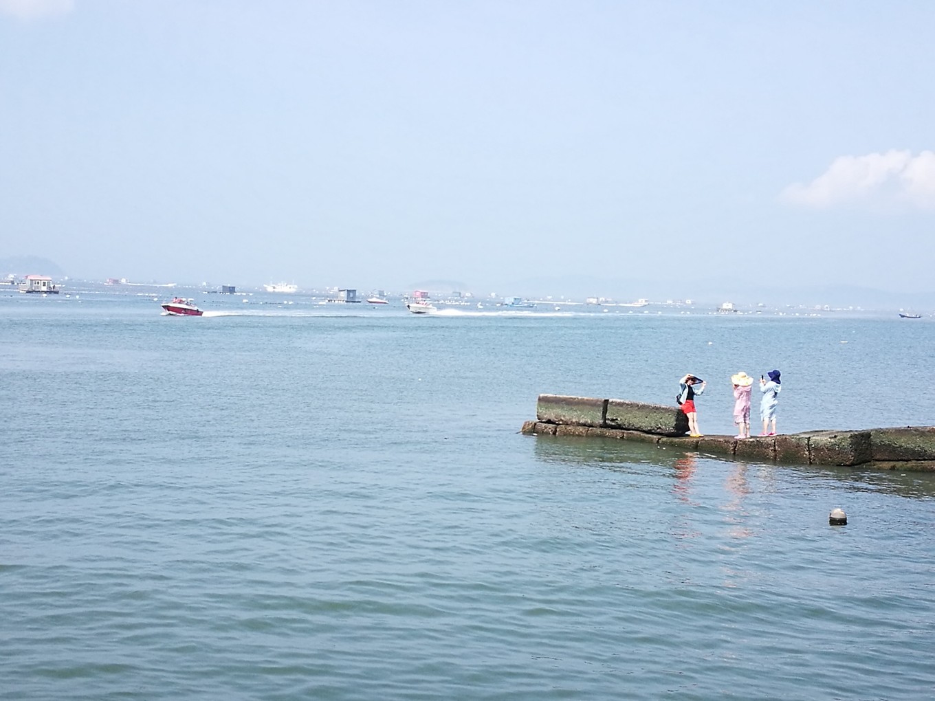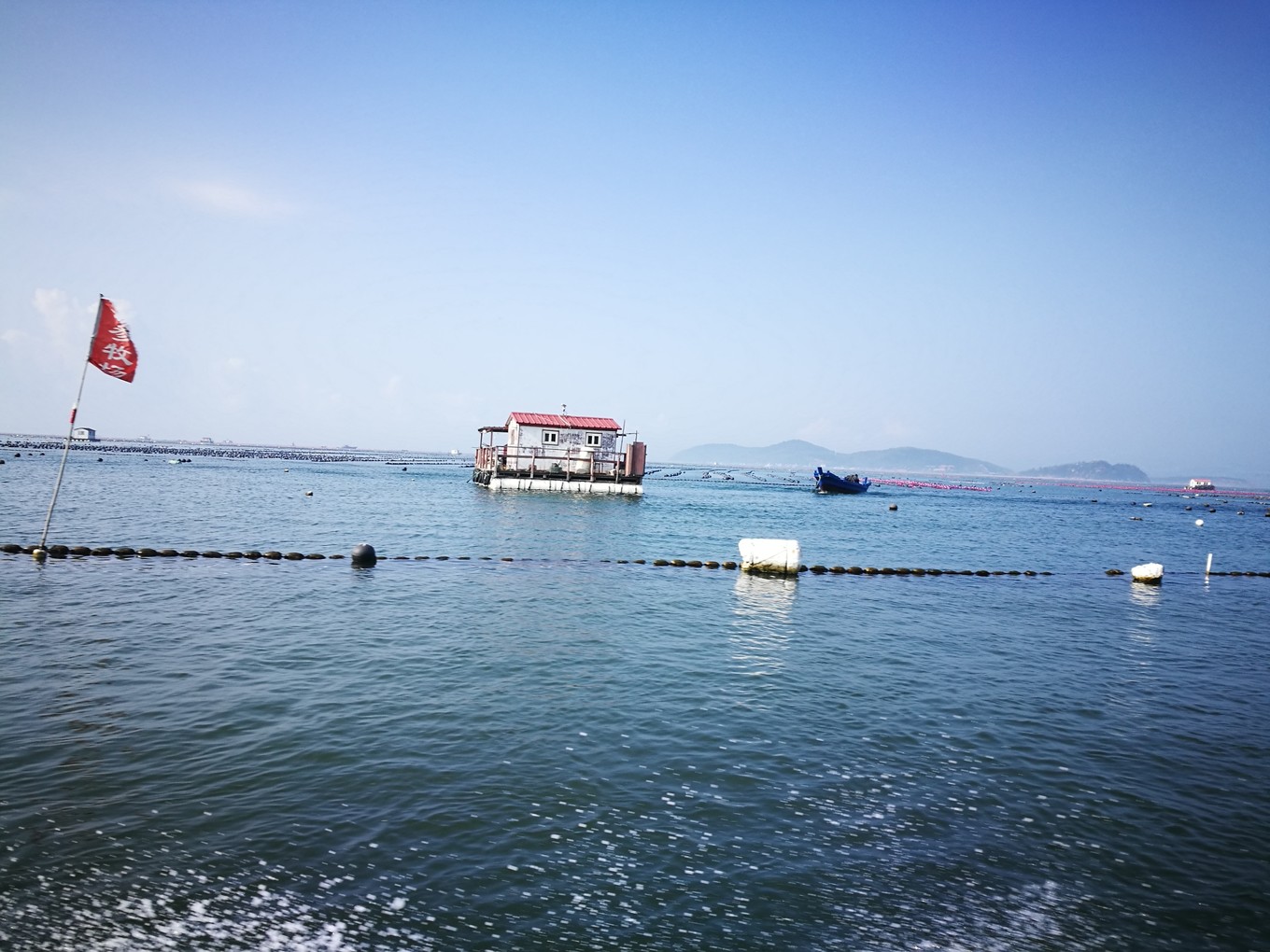 長(zhǎng)島海上游游艇穿梭在養(yǎng)殖區(qū)