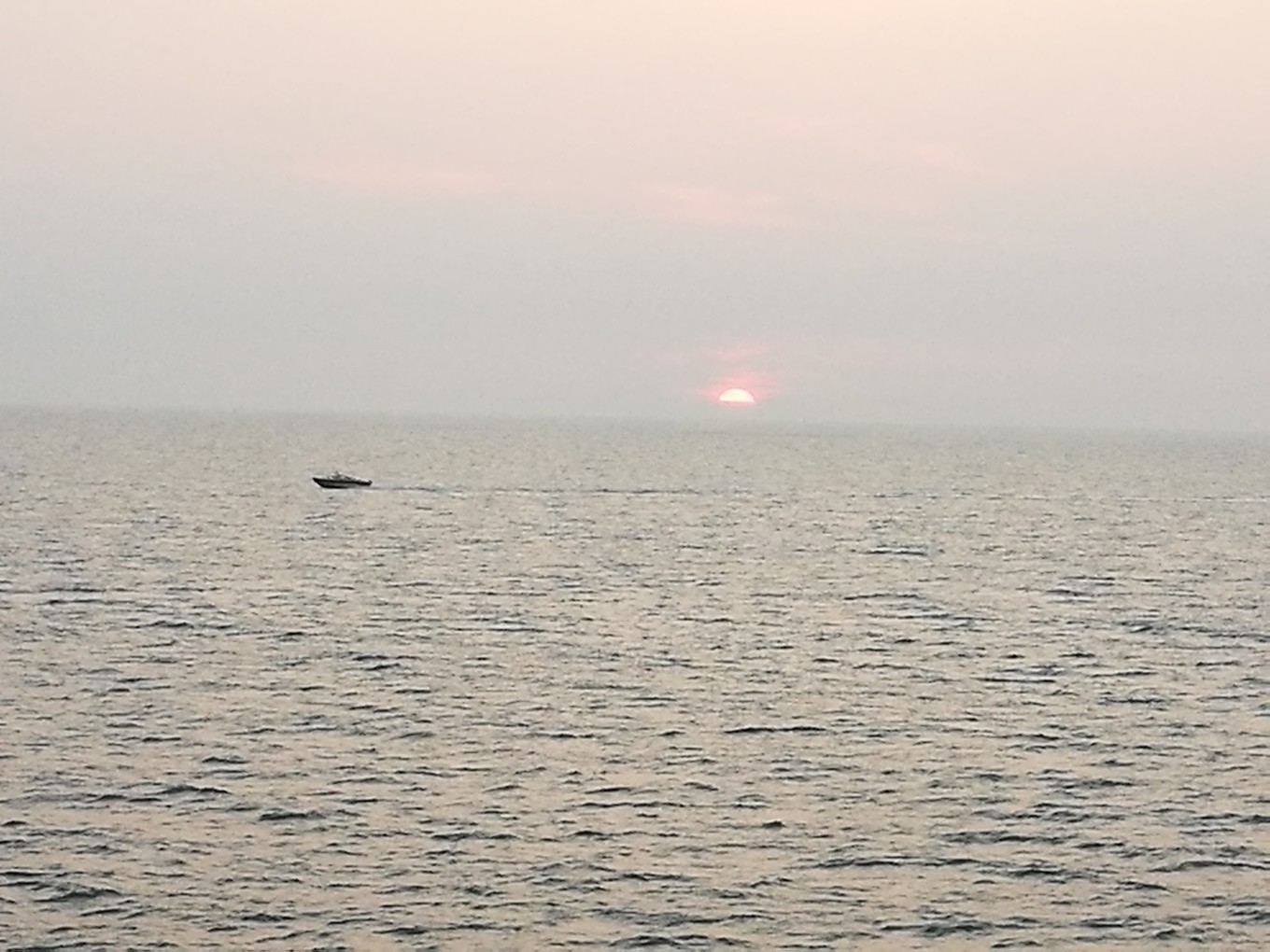 在船上看到了日落,心情好了起來。
