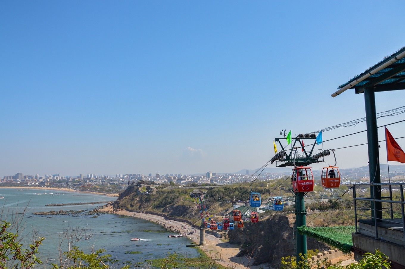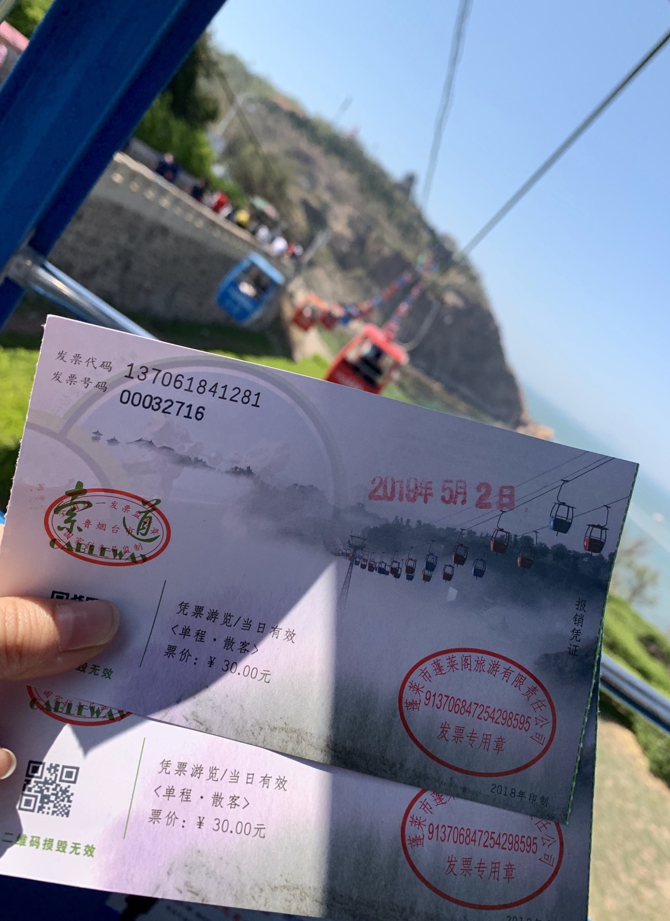索道可買單程也可買往返的,往返是50元/人,可以原路回去蓬萊閣,也可以自行下山去碼頭。