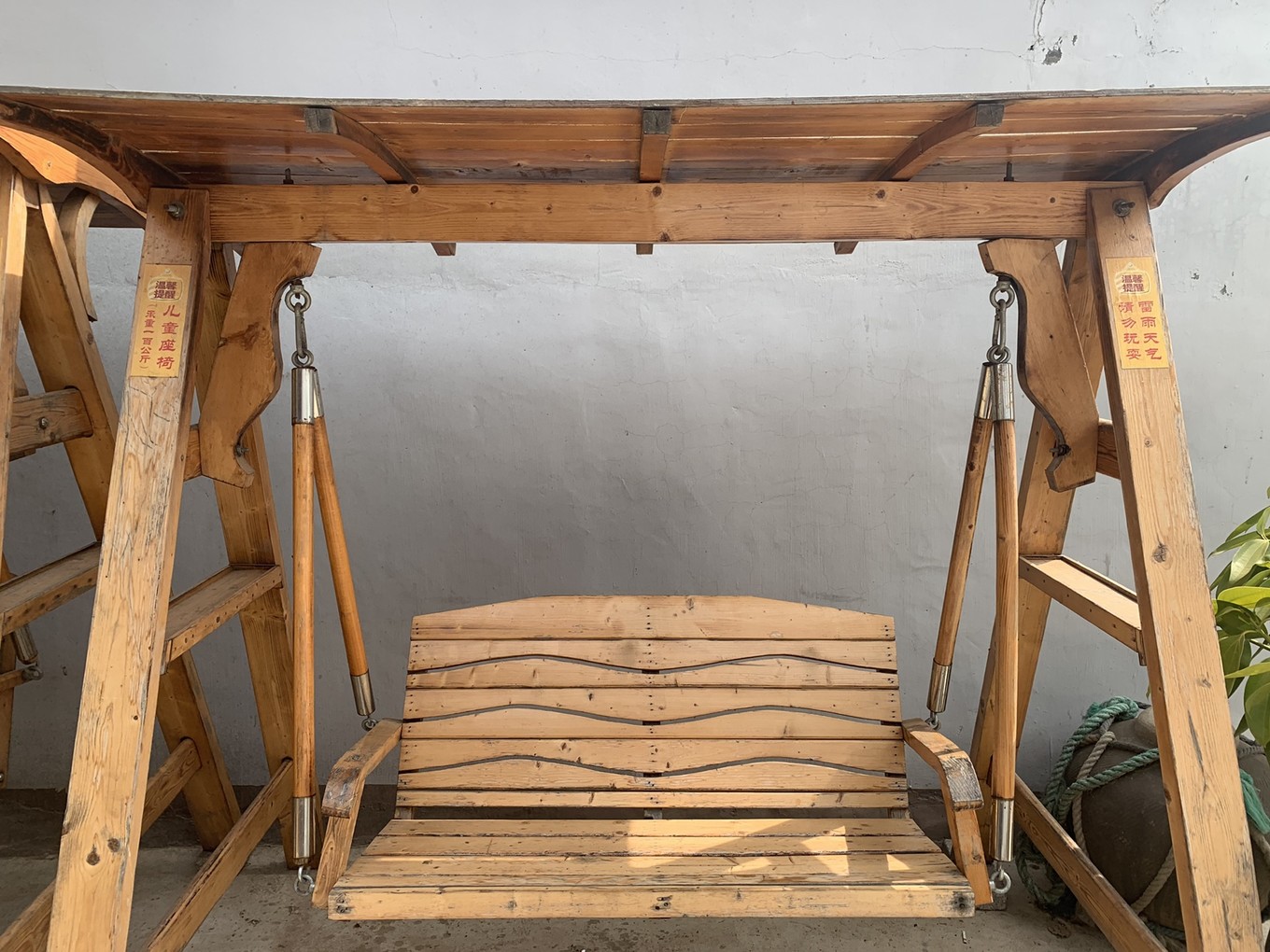 長島海上人家漁家樂院子里有兩個木秋千