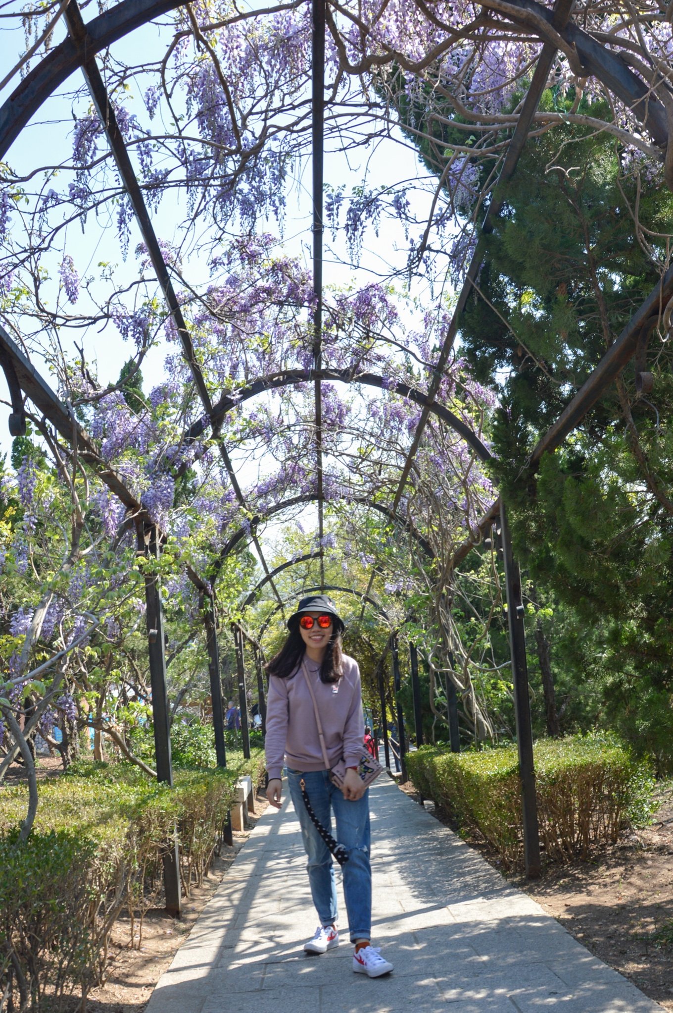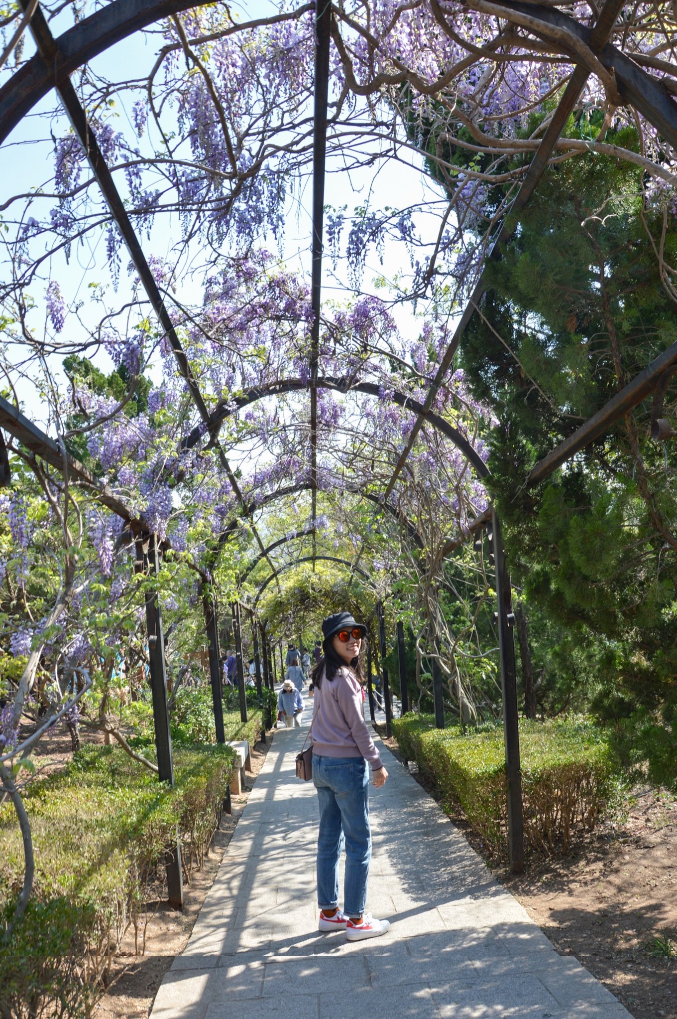 下山的路上有一排搭的花藤架子,不知道這是啥花,已經凋謝的七七八八了,老公大概覺得沒給我拍幾張照片吧,在這給我抓拍了一些,這2張雖然沒對上焦我還挺喜歡的。希望我們以后都走“花路”呀