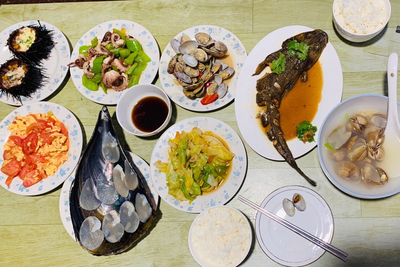 我在海上漁家樂吃了4頓正餐,種類非常的豐富,老板娘的手藝不錯,家常菜炒的也很好吃呢。。