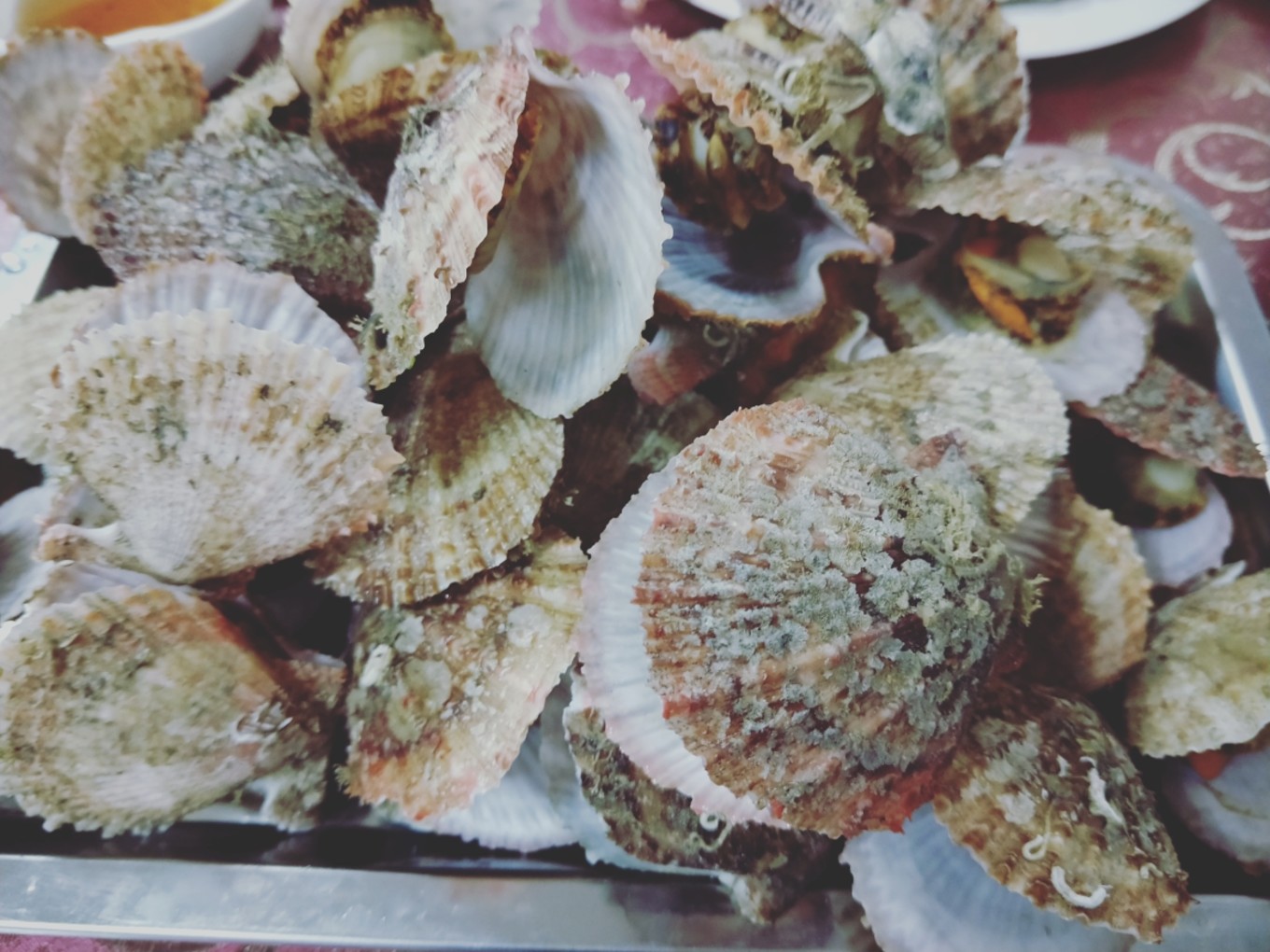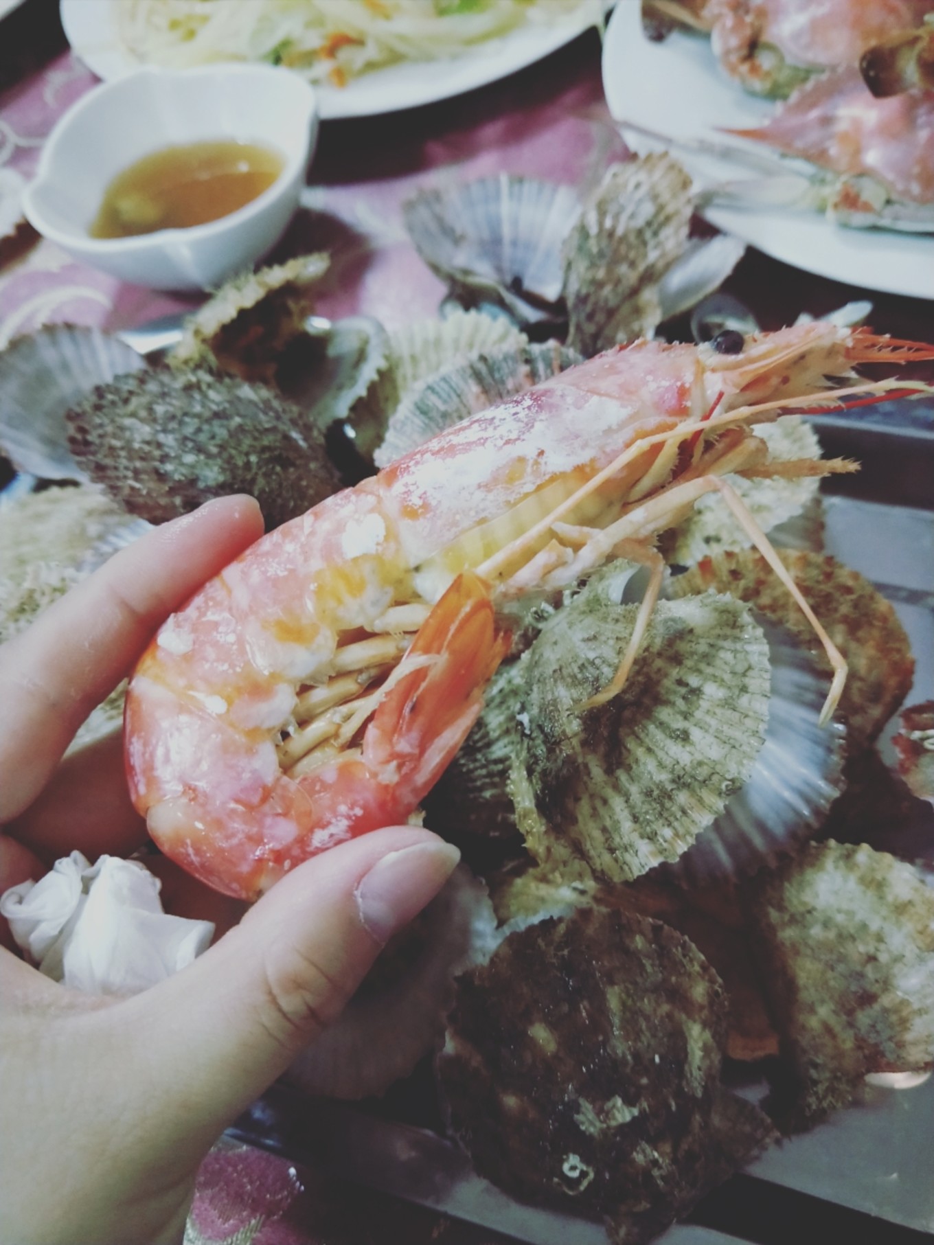 四個(gè)人,八個(gè)菜,蝦還是挺大的!扇貝的肉也很厚實(shí),因?yàn)檫@里的海鮮大部分都是清蒸,所以還是會(huì)有一點(diǎn)腥,剛開始確實(shí)有點(diǎn)吃不習(xí)慣…