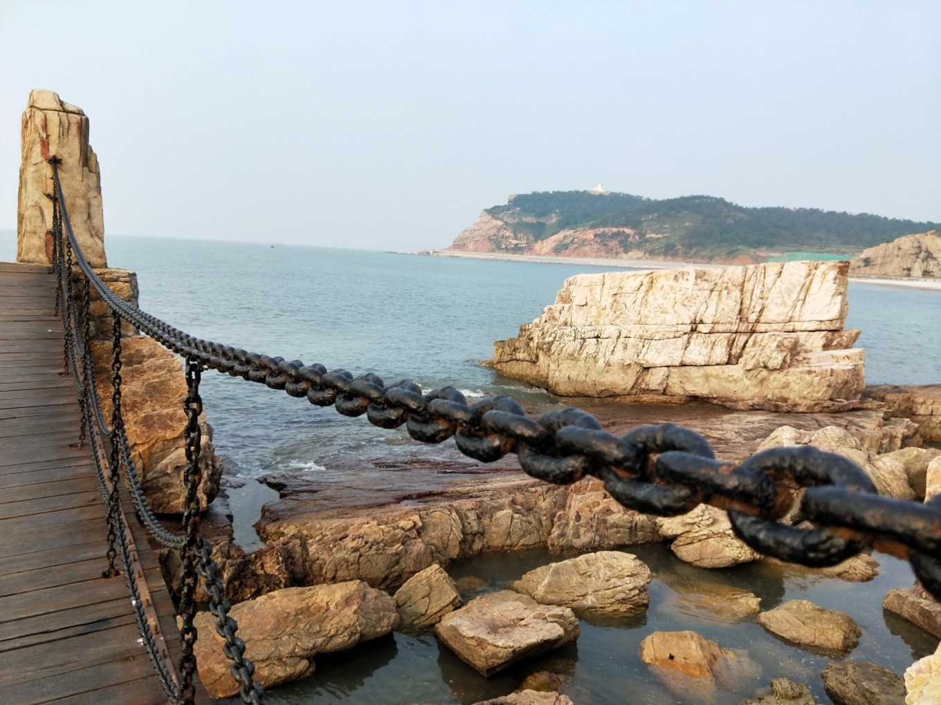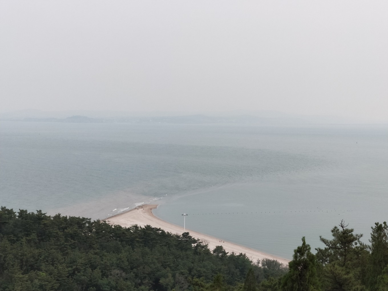 Day2 下午 烽山和林海烽山,主要是在高處觀望黃海和渤海的交匯,一道類似太極的S彎,兩海相交,互相拍打著海浪,但兩個(gè)海水的顏色卻不曾融合!然后,可以下到海灘S彎處,近距離感受黃渤海的深淺交匯!很神奇!