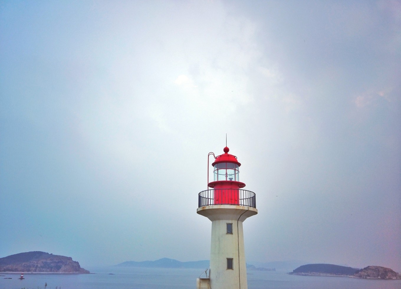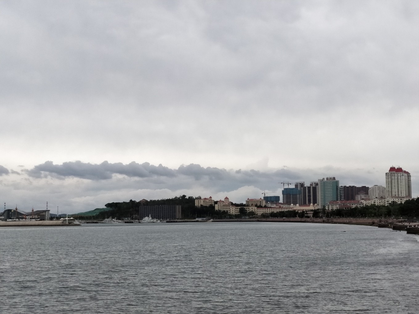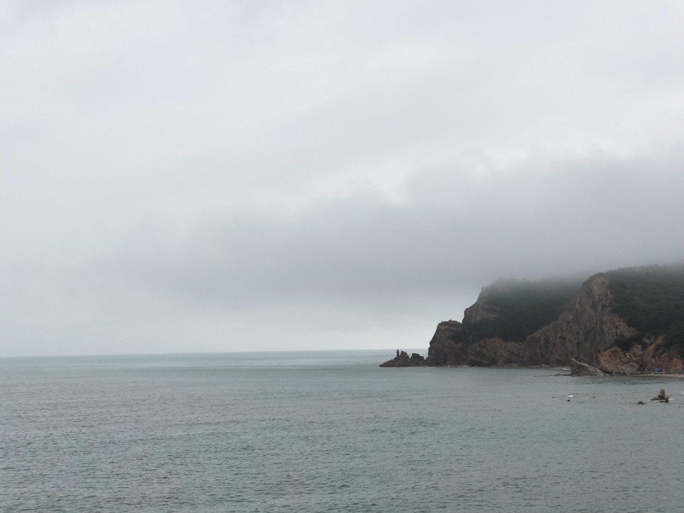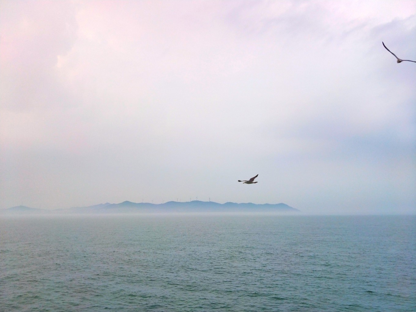 我們下午5:30到達(dá)蓬萊港,加上經(jīng)停,整整12個(gè)小時(shí)!其中有一段長(zhǎng)度200公里的高速,因?yàn)樾蘼?,變成了單車道,?dǎo)致速度慢了不少!還好,趕上了最后一班去往長(zhǎng)島的輪渡。登船時(shí),下起了零星小雨,海面上看起來(lái)霧蒙蒙的,變得更美了…當(dāng)時(shí)還在擔(dān)心,看天氣預(yù)報(bào)接下來(lái)幾天都有雨,感覺會(huì)很掃興,殊不知后來(lái)的幾天曬成狗,每天都盼下雨…