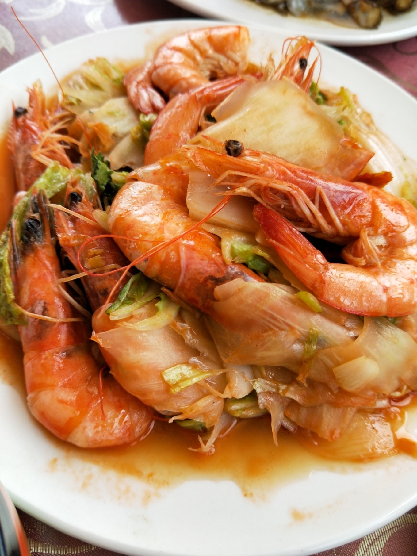 我們安頓好行李后,老板就喊我們上二樓吃飯!當(dāng)然,迫不及待就上去了…其實(shí),我們四個(gè)人對(duì)吃海鮮都不是特別感興趣也不在行,所以,也不會(huì)挑剔海鮮的品類,所以覺得只要味道好,能吃飽就可以了。