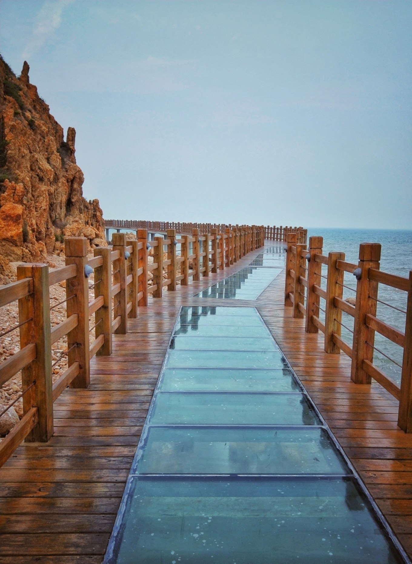 Day2 晚上 木棧橋林海的話,主要是為了看海上的木棧橋,有一段是玻璃的,可以直接看到腳下的海浪拍打巖石!還是會(huì)有點(diǎn)擔(dān)心玻璃的質(zhì)量,哈哈~晚上的話,大概七八點(diǎn),木棧橋會(huì)亮燈,還是蠻好看的!