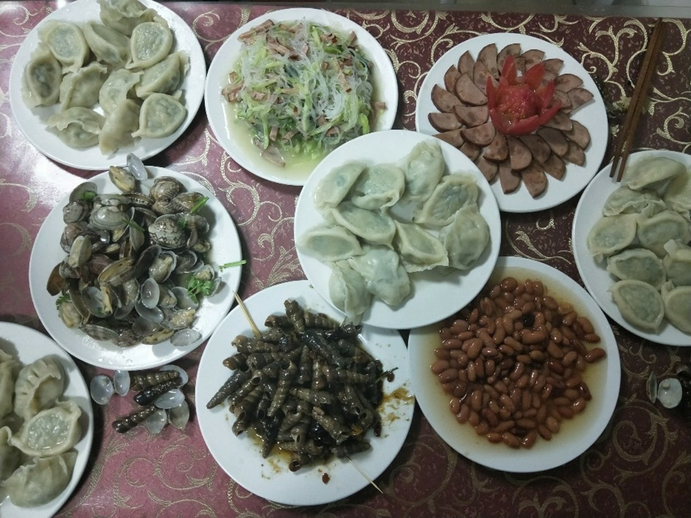 晚餐,吃到了傳說中的鲅魚餃子!好大一個(gè)喲!本來(lái)很期待,但說實(shí)話,吃不出來(lái)是魚肉做的,因?yàn)榫虏说奈兜勒娴纳w過了所有…哈哈
