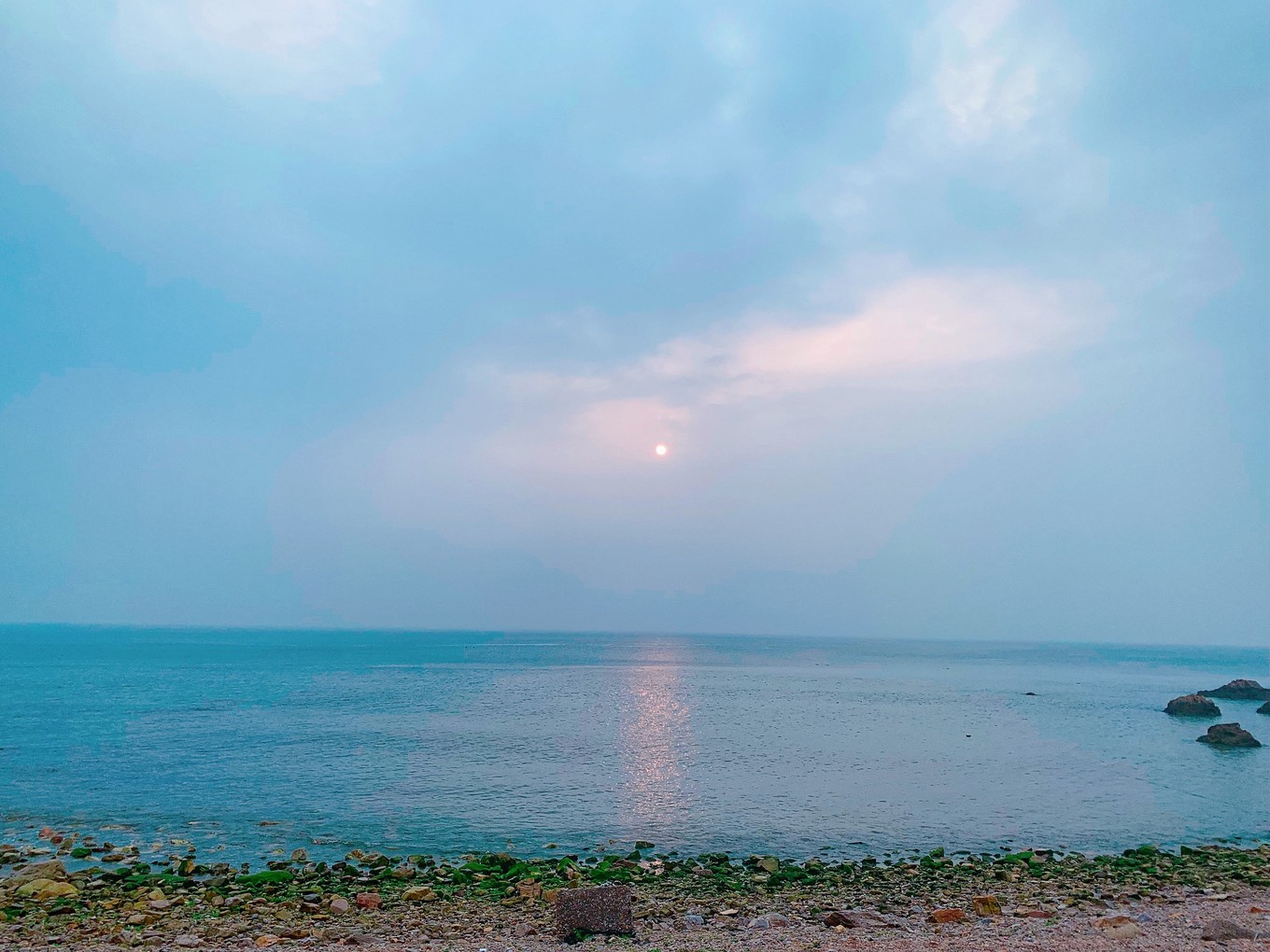 霧靄茫茫,海上風(fēng)平浪靜。