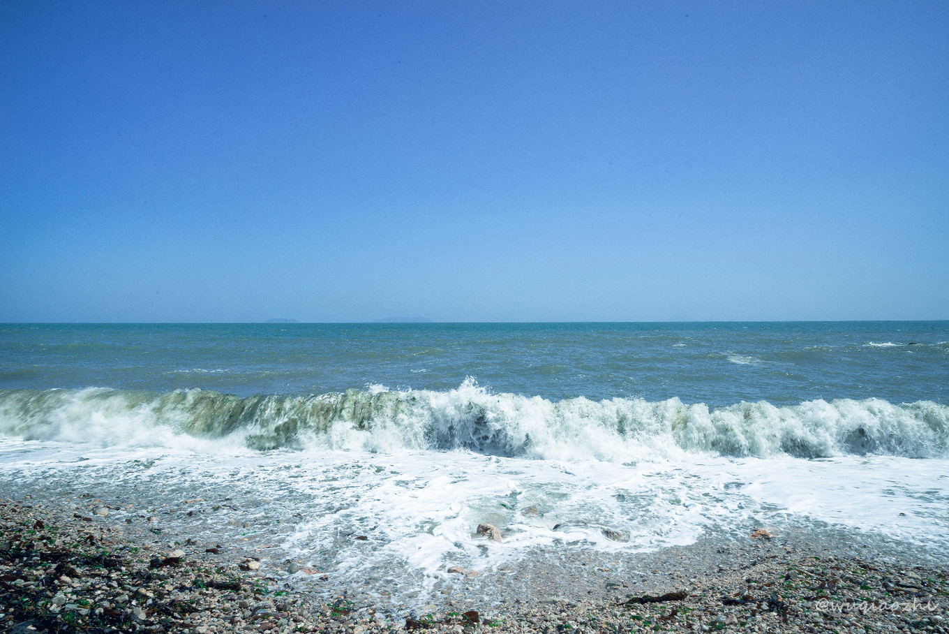位于南島仙境源的沙灘。大中午我們趕到了,太陽(yáng)賊毒,高溫下海邊的海帶的腐臭味也是十足的;不過(guò)終于能聽(tīng)到外海的聲音了,和內(nèi)海相比,躁動(dòng)了太多,十分不穩(wěn)定,仿佛下一個(gè)浪就會(huì)把我和相機(jī)卷入水中