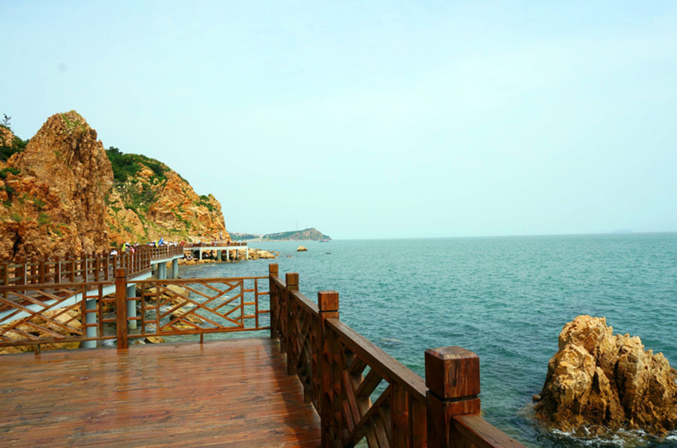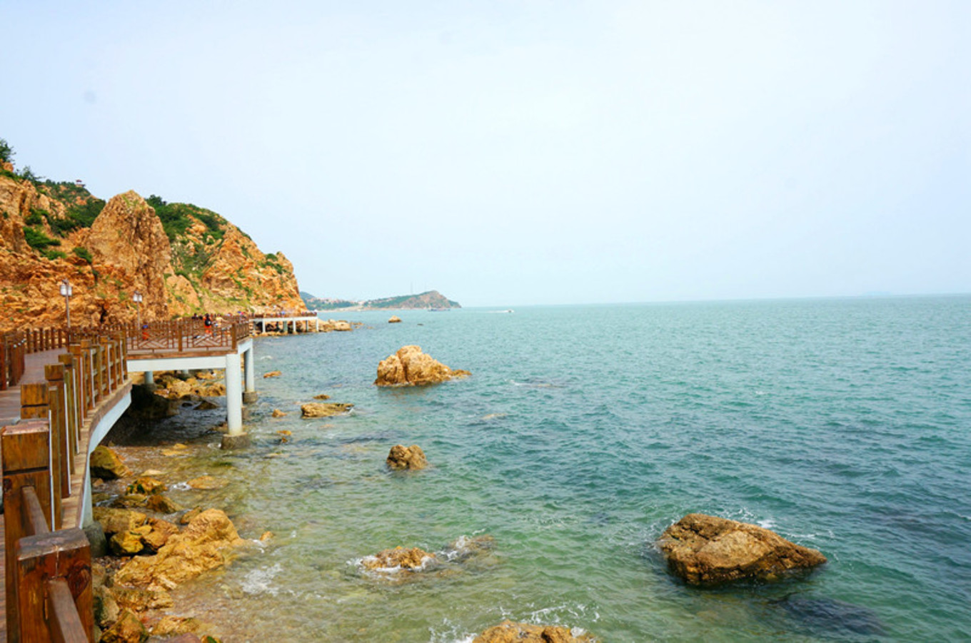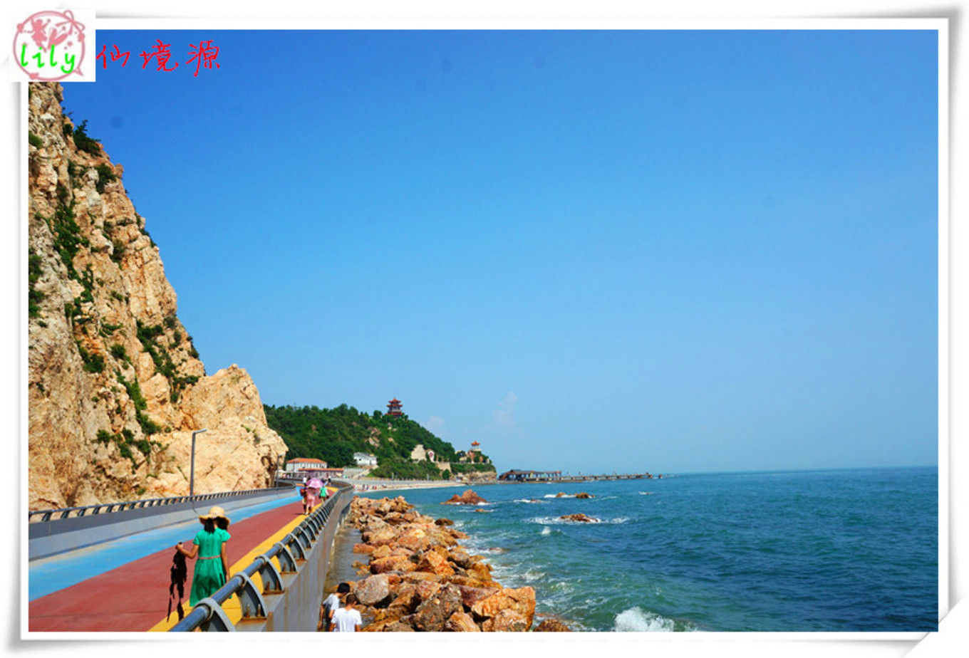 最喜歡的就是海邊的木棧道,一邊臨著陡峭的山,一邊臨著浩瀚的海,腳下還有一段是透明玻璃棧道。沿海漫步,海風(fēng)吹在身上涼涼的。海邊的氣候就是這樣,艷陽高照,但海風(fēng)是涼的,空氣并不干燥。我就是喜歡海,七年前來的時(shí)候,每個(gè)景區(qū)還沒有修建的那么漂亮,那時(shí)的長(zhǎng)島才剛剛為人所知。游人也沒有那么多。