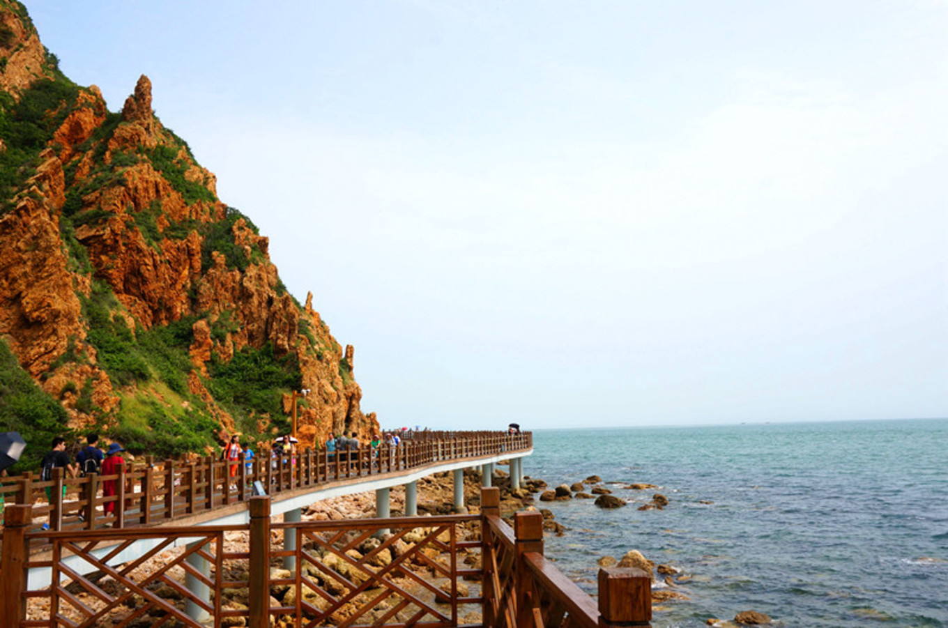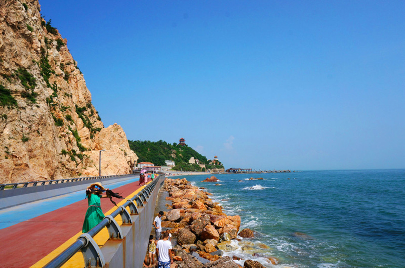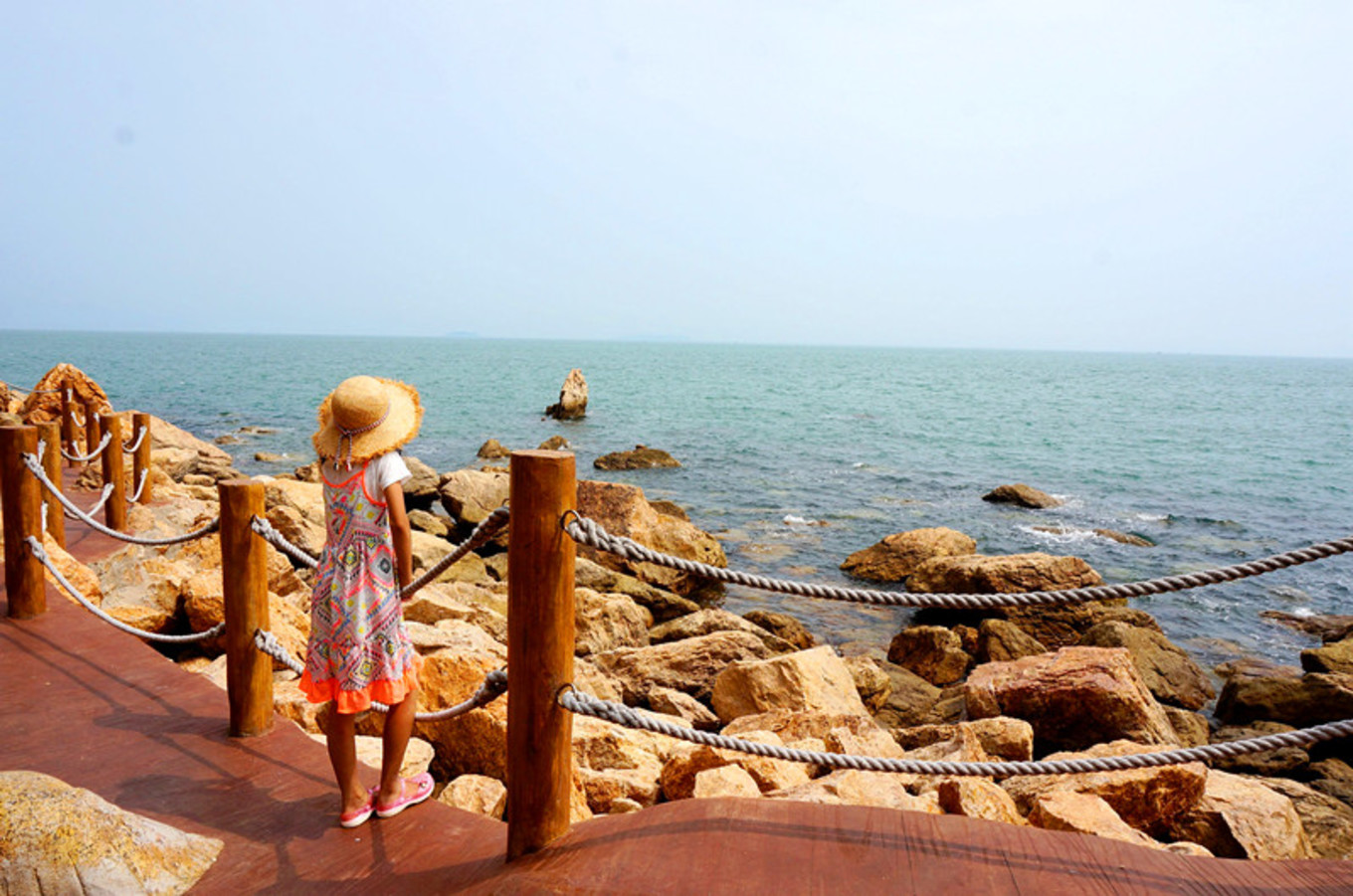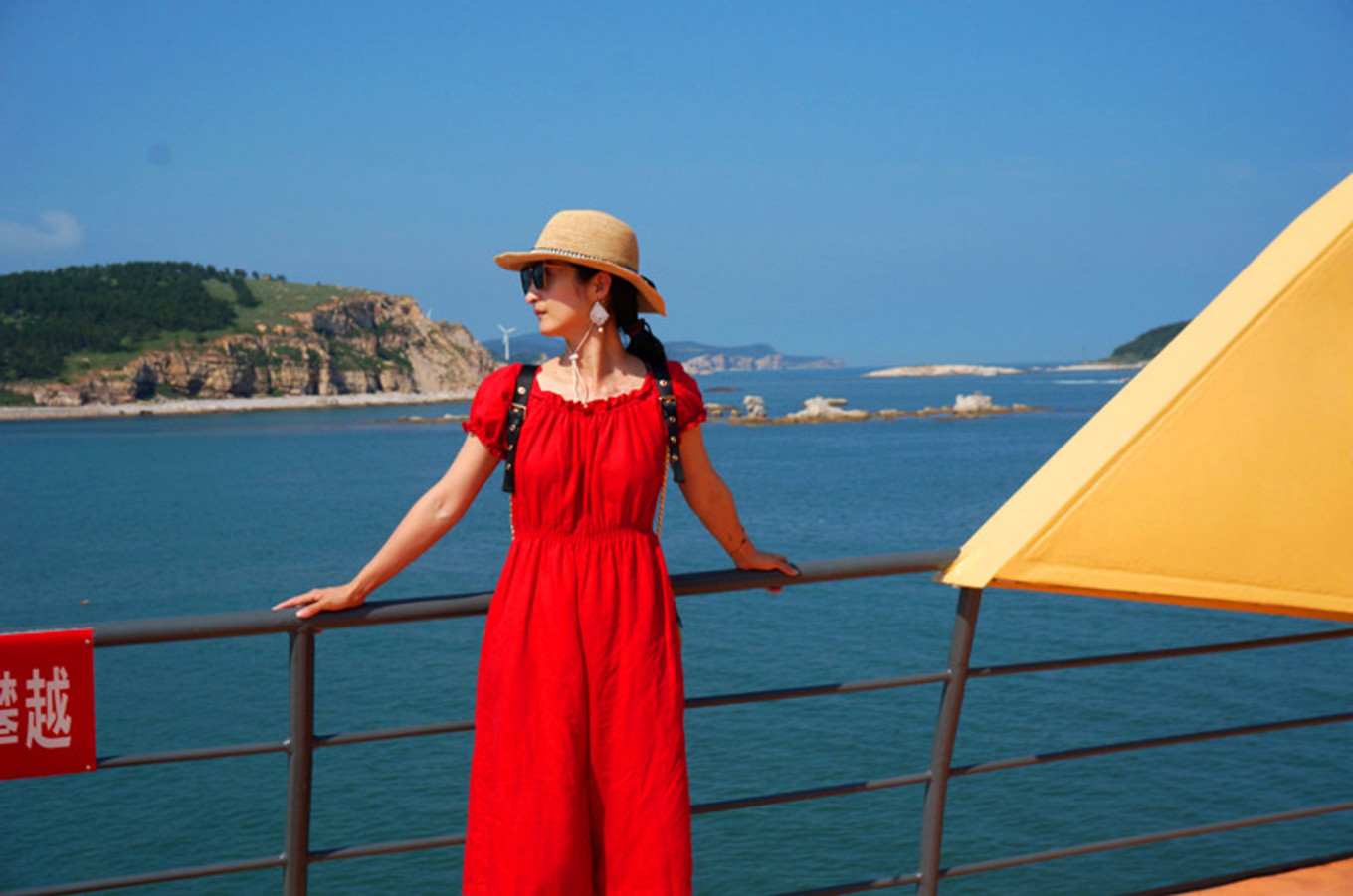 最喜歡的就是海邊的木棧道,一邊臨著陡峭的山,一邊臨著浩瀚的海,腳下還有一段是透明玻璃棧道。沿海漫步,海風(fēng)吹在身上涼涼的。海邊的氣候就是這樣,艷陽高照,但海風(fēng)是涼的,空氣并不干燥。我就是喜歡海,七年前來的時(shí)候,每個(gè)景區(qū)還沒有修建的那么漂亮,那時(shí)的長(zhǎng)島才剛剛為人所知。游人也沒有那么多。