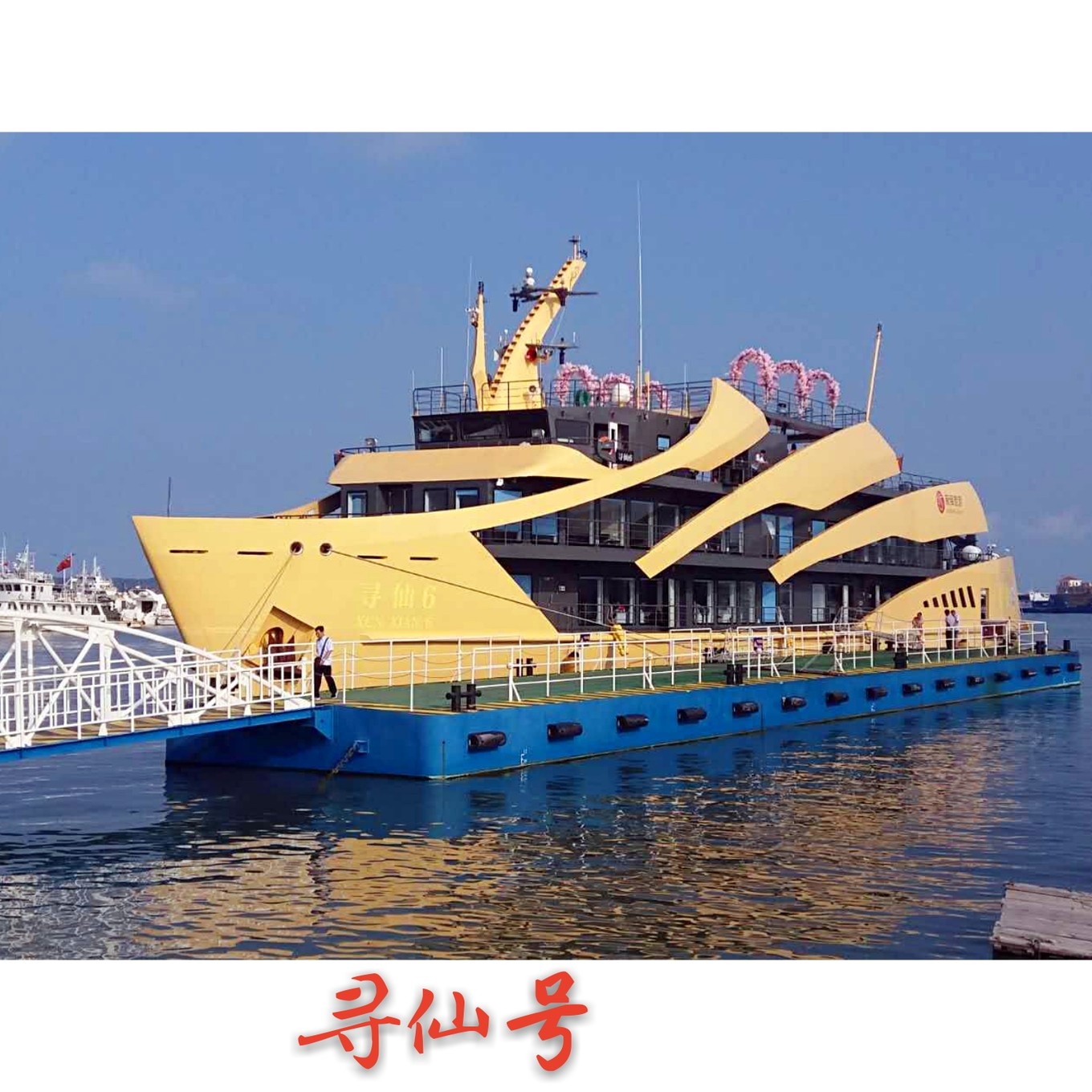 我們沒有坐在船艙里,而是跑到甲板上看風(fēng)景,不過一路真的是天藍(lán)藍(lán)海藍(lán)藍(lán)。