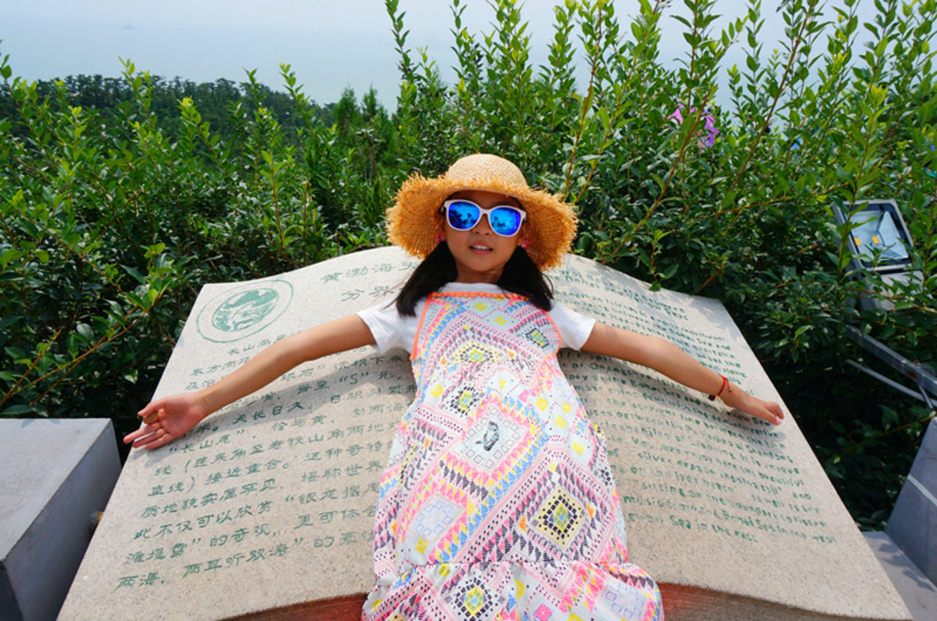 登上黃渤海界碑,七年前你曾在這里留下記憶,七年后的你在同一個(gè)地方再次留下記憶。不變的還是那片海,改變的是你的容顏。從可愛的包仔臉變成小美人。
