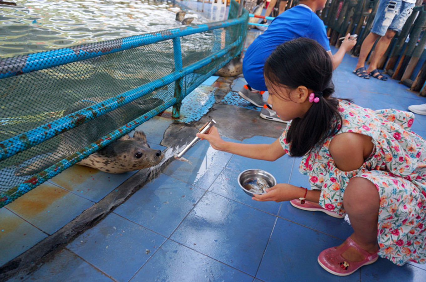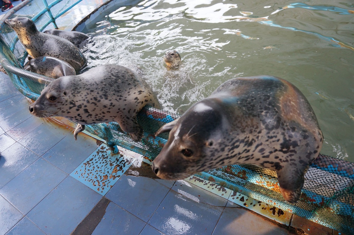這里有一個(gè)海豹館,還有海龜館,可以喂海豹喂海龜。里面海豹看著好像都挺餓。