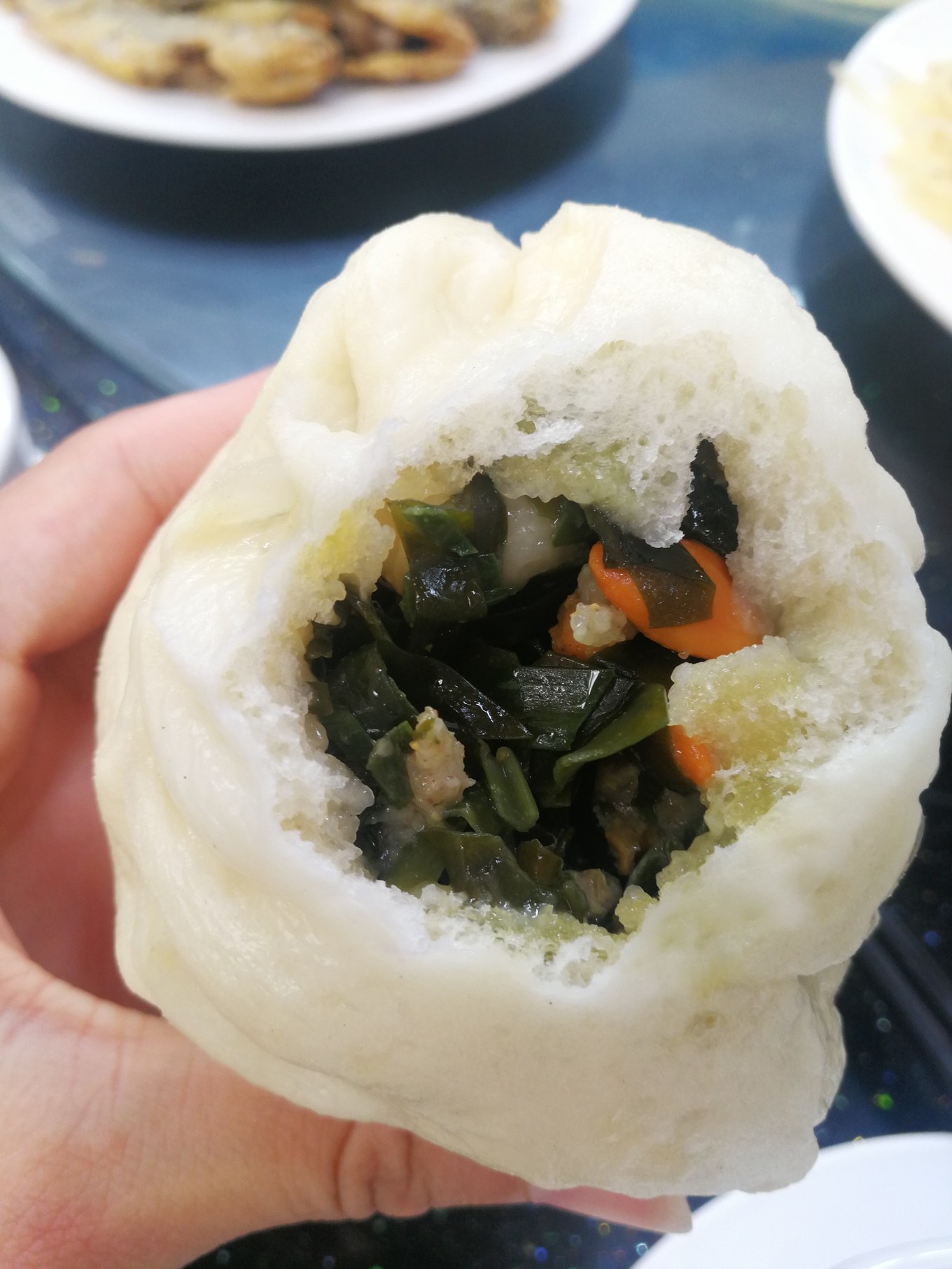 晚上大姐又給我們包了海菜包子。