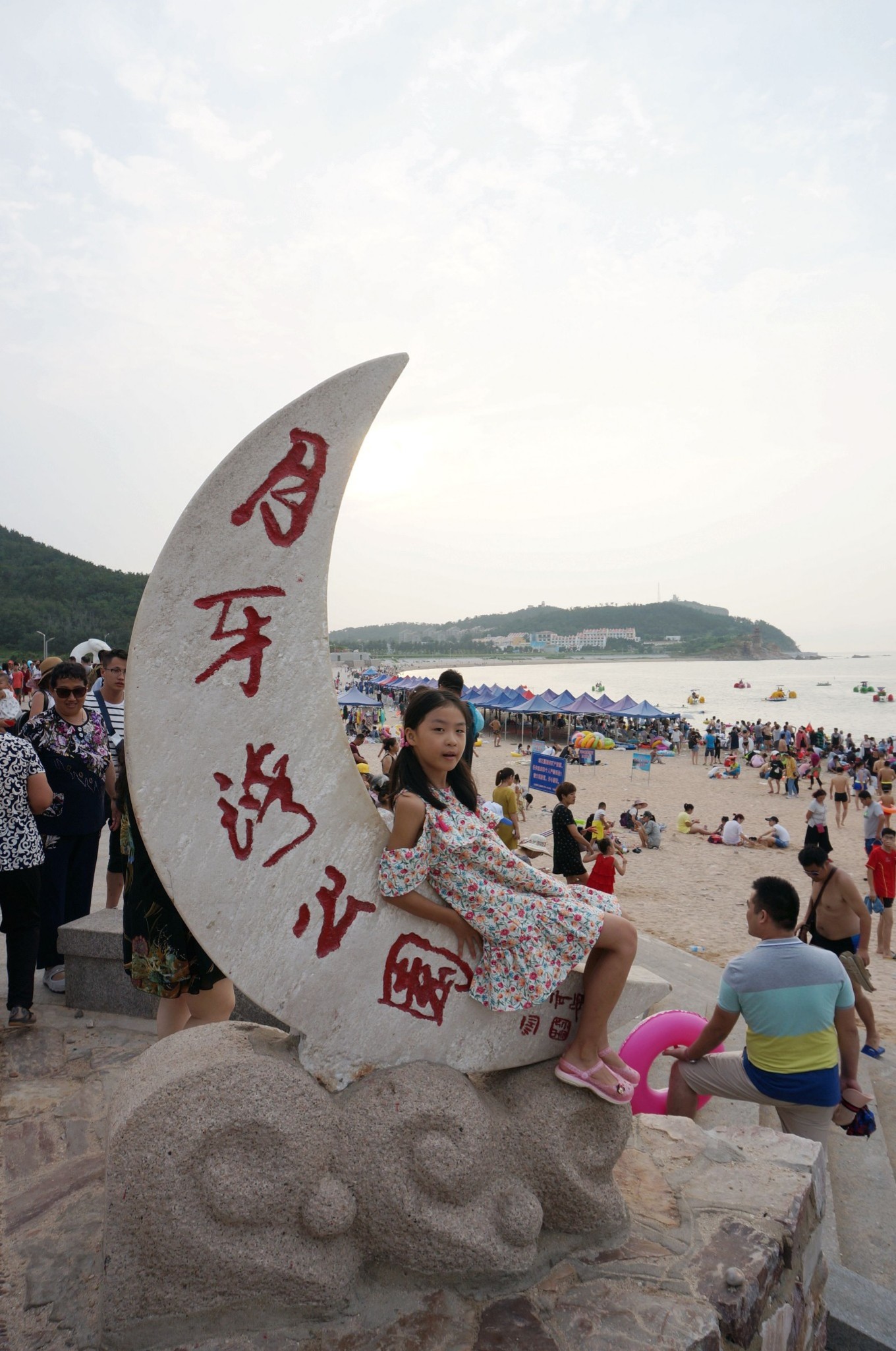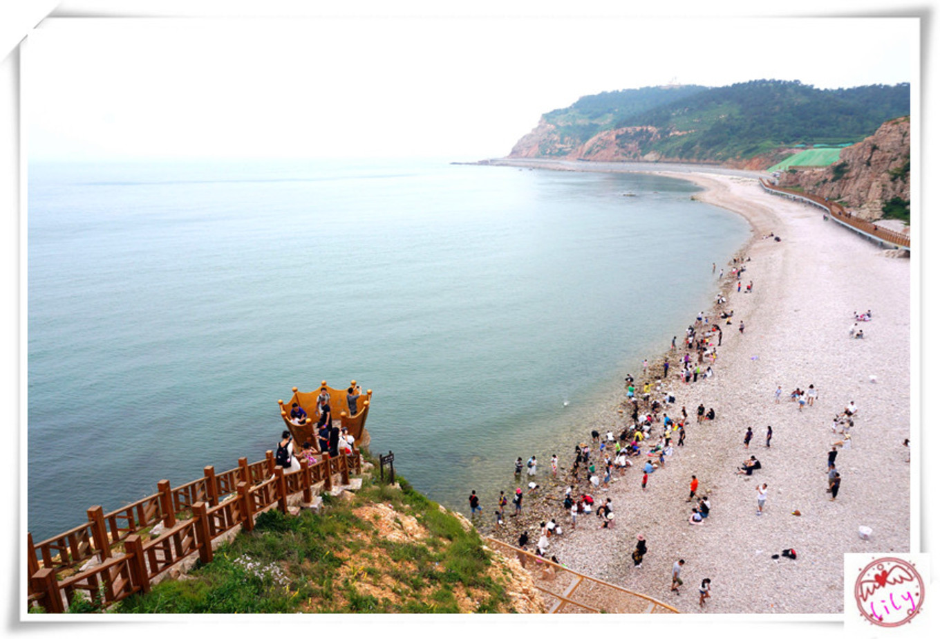 (1)月牙灣:位于北長(zhǎng)山島的北部,這里的石頭很特別,是圓滑的球石。這里是天然的浴場(chǎng),有很多人在沙灘邊玩耍和嬉戲。