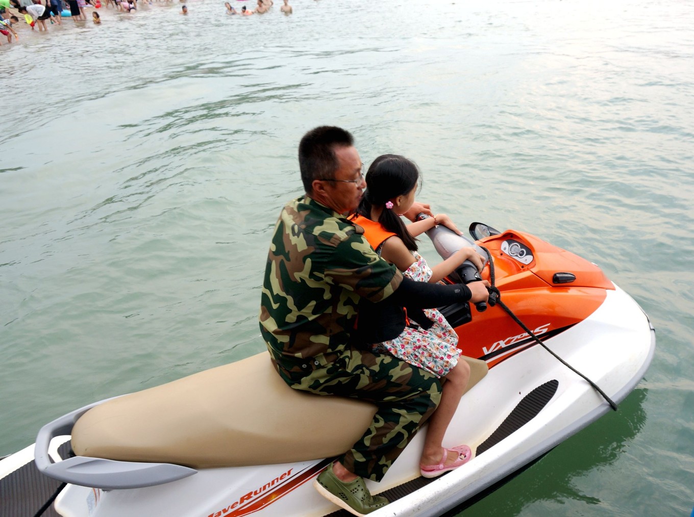 這里有摩托艇,100元一位,不便宜。是女兒最愛的項(xiàng)目,刺激的項(xiàng)目。
