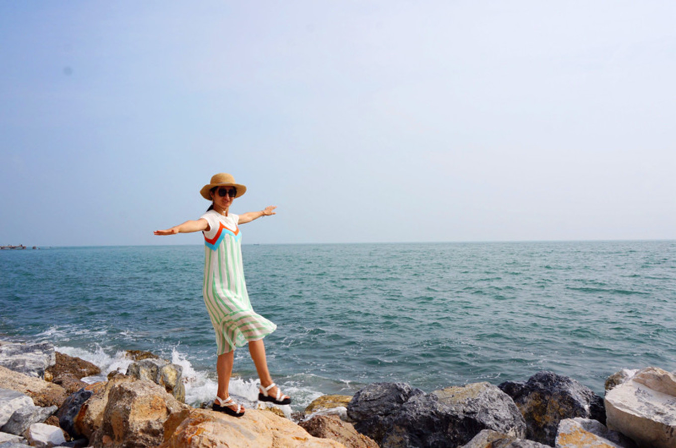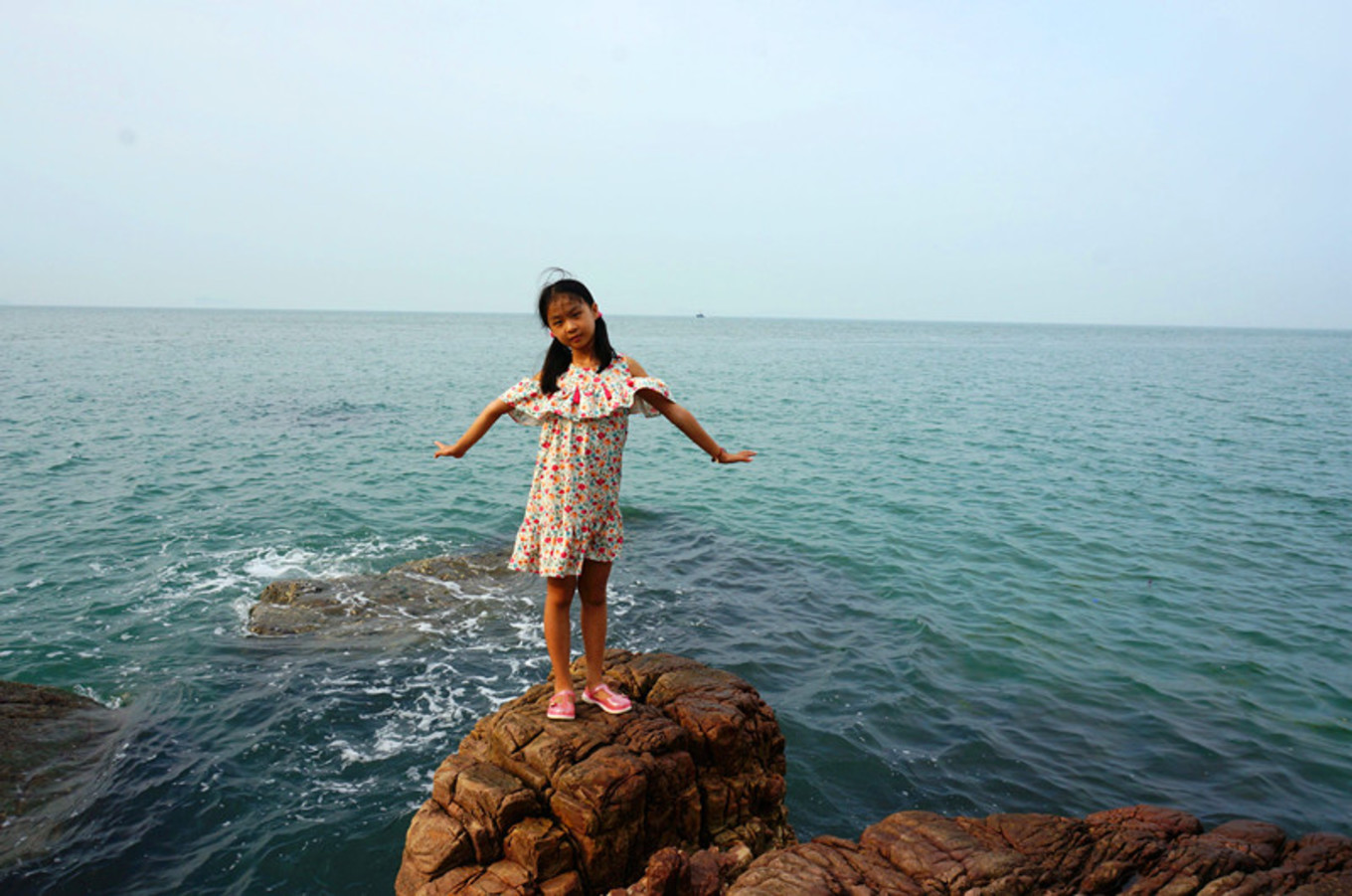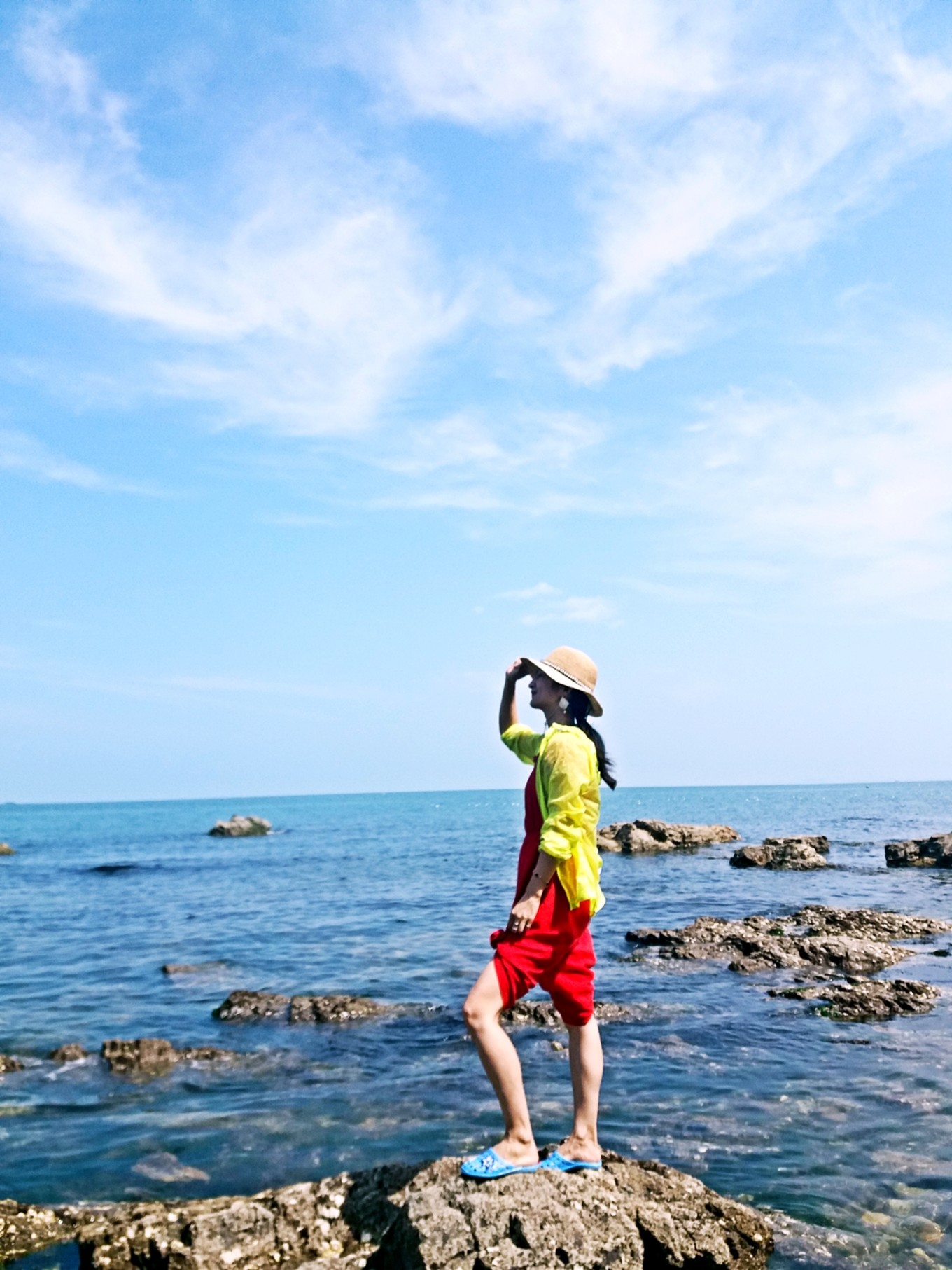 坐在礁石上,找到了小美人魚的感覺。在浩瀚的大海中,做一只自由自在游來游去的快樂小魚也是一件幸福的事情。