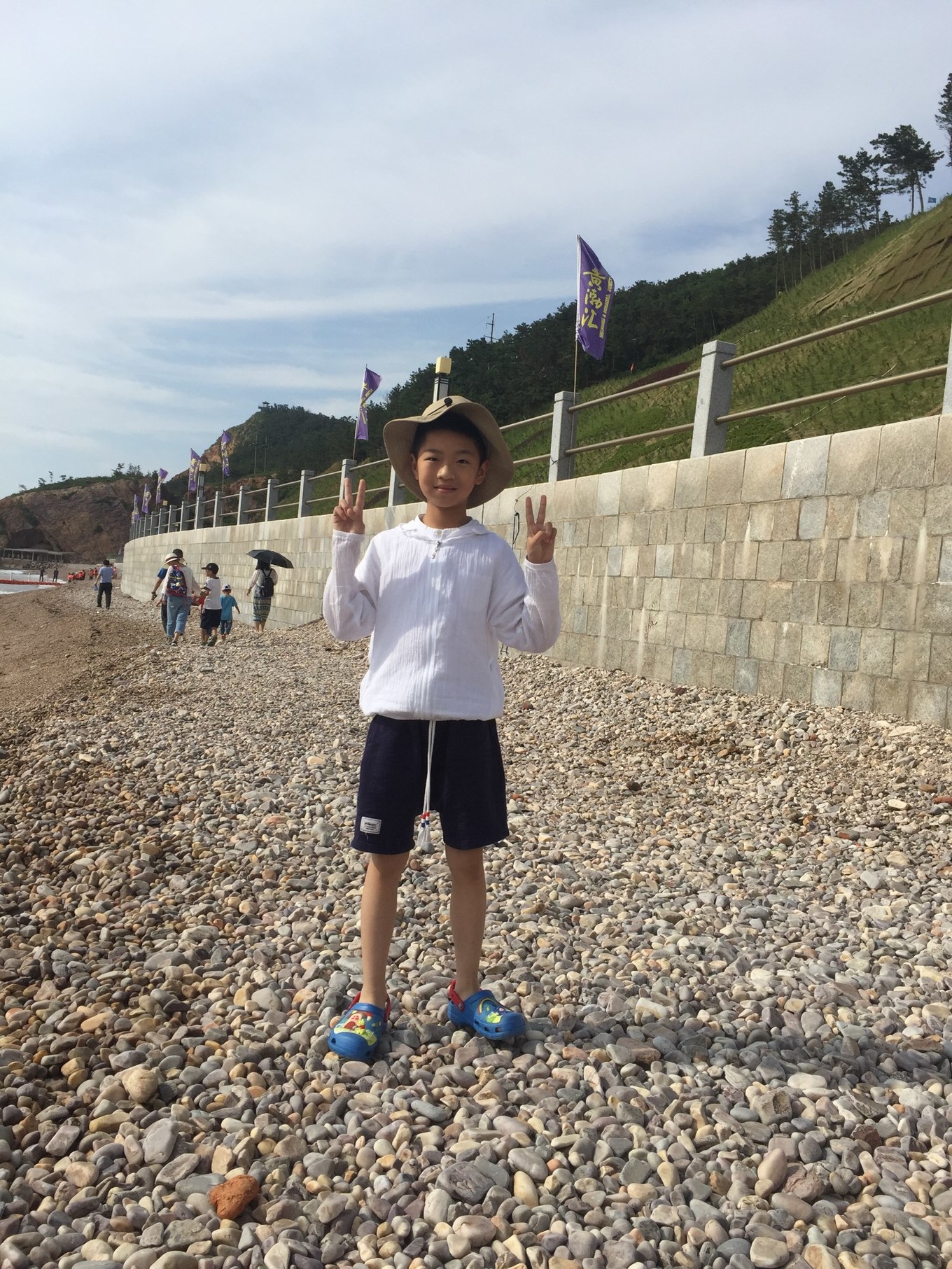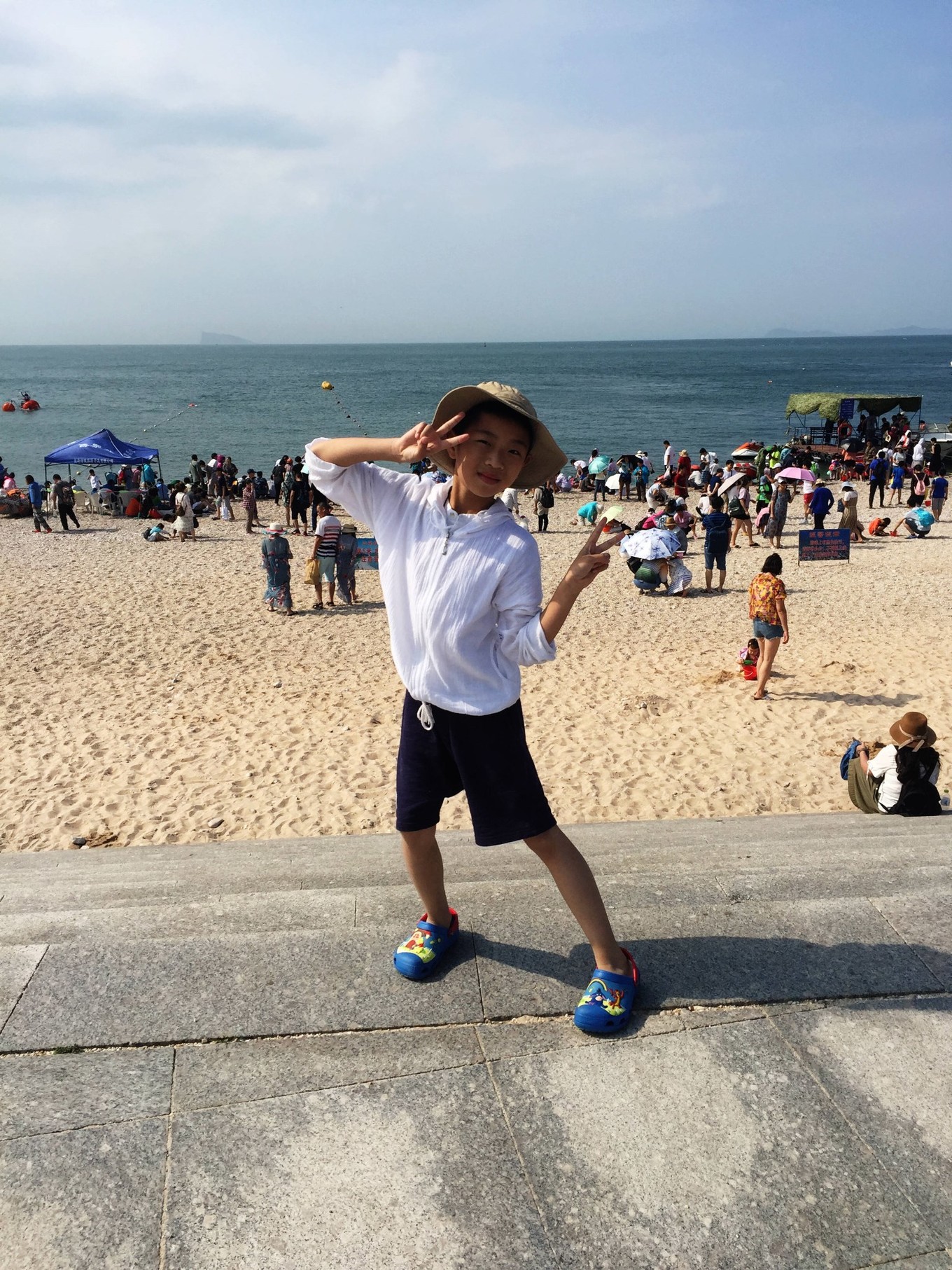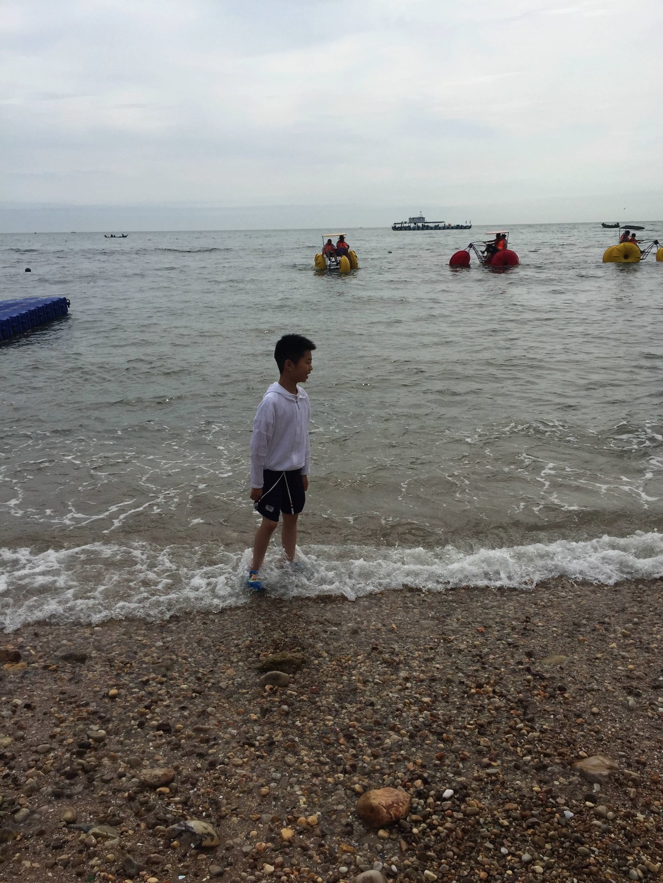 因為這次只有我們娘倆出來玩,男孩長大了跟媽媽一起,就是會有一些不方便的地方?,F(xiàn)在兒子還不能獨(dú)立去男浴室換泳衣,那邊人雜,也實在不放心。再加上7月初的海水太涼了,所以這次出行沒有下海。但是孩子在海邊踩踩海水,照樣很開心。